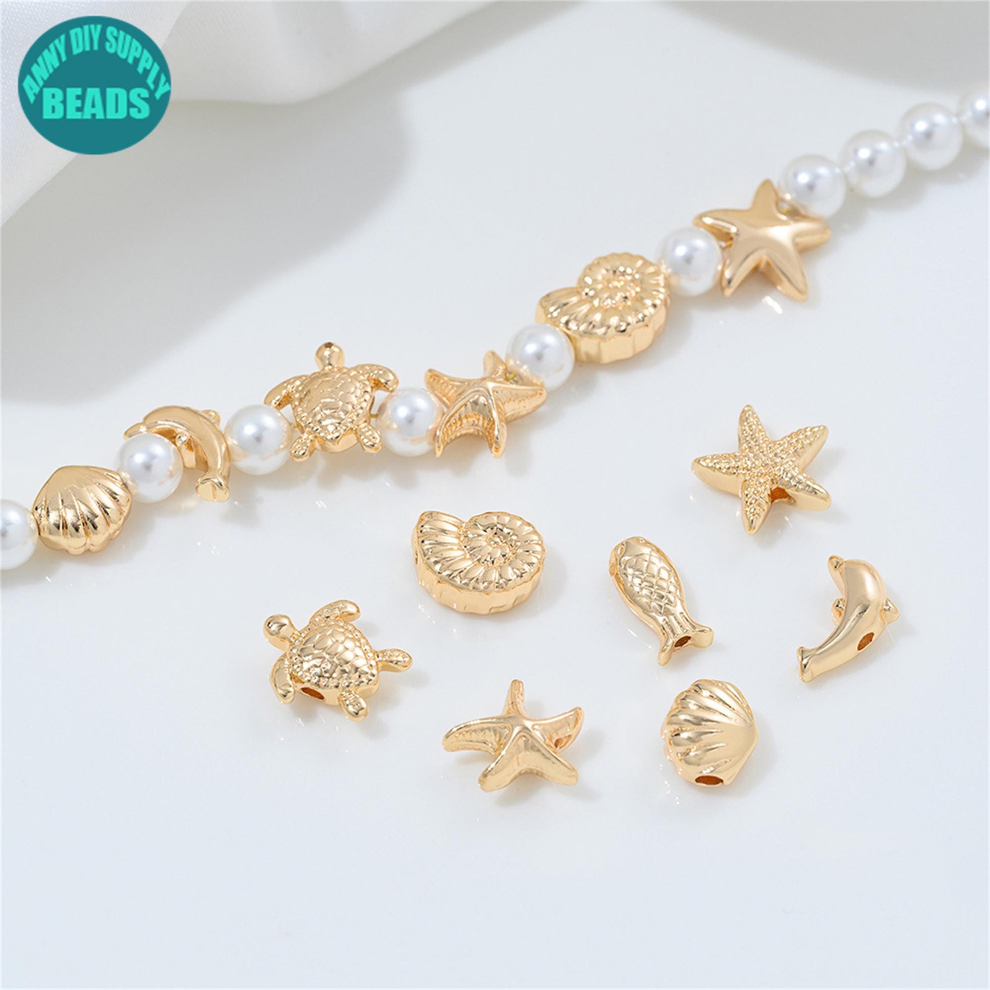14k Gold Plated Ocean Beads:Starfish,Turtle,Fish,Conch,Dolphin