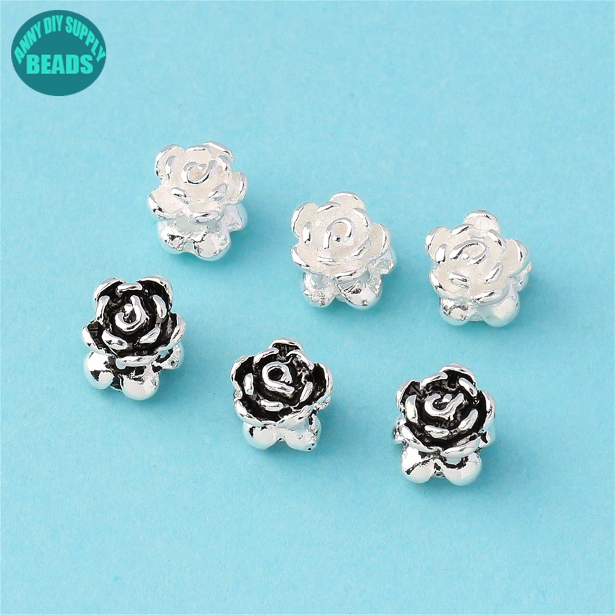 S925 Sterling Silver Rose Flower Beads,Tiny Flower Beads,Silver Flower Beads,Silver Beads,Spacer Beads,Bracelet Making Beads