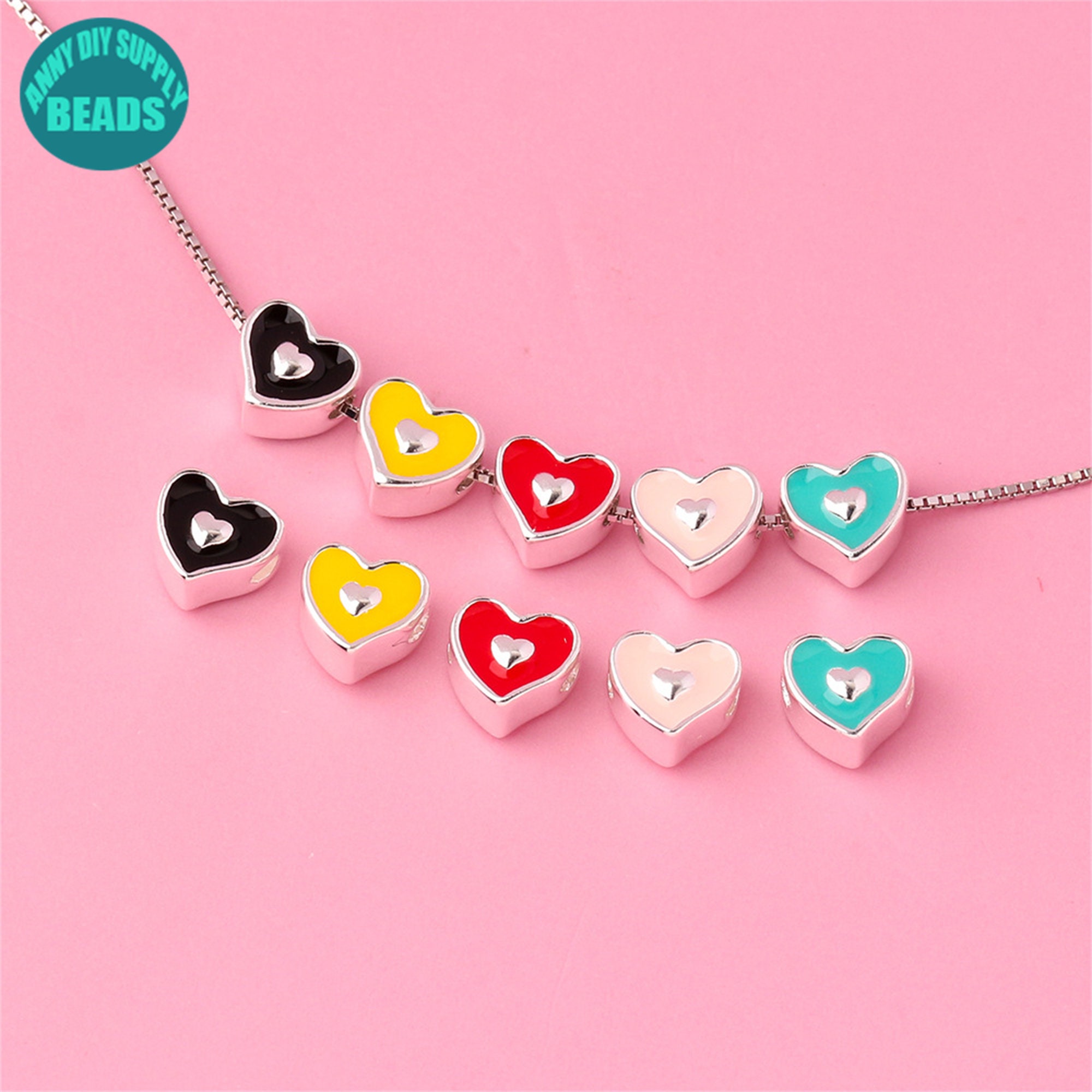 S925 Sterling Silver Tiny Heart Beads,Oil Dripped Beads,Sterling Silver Heart Beads,Silver Beads,Bracelet Bead Spacers