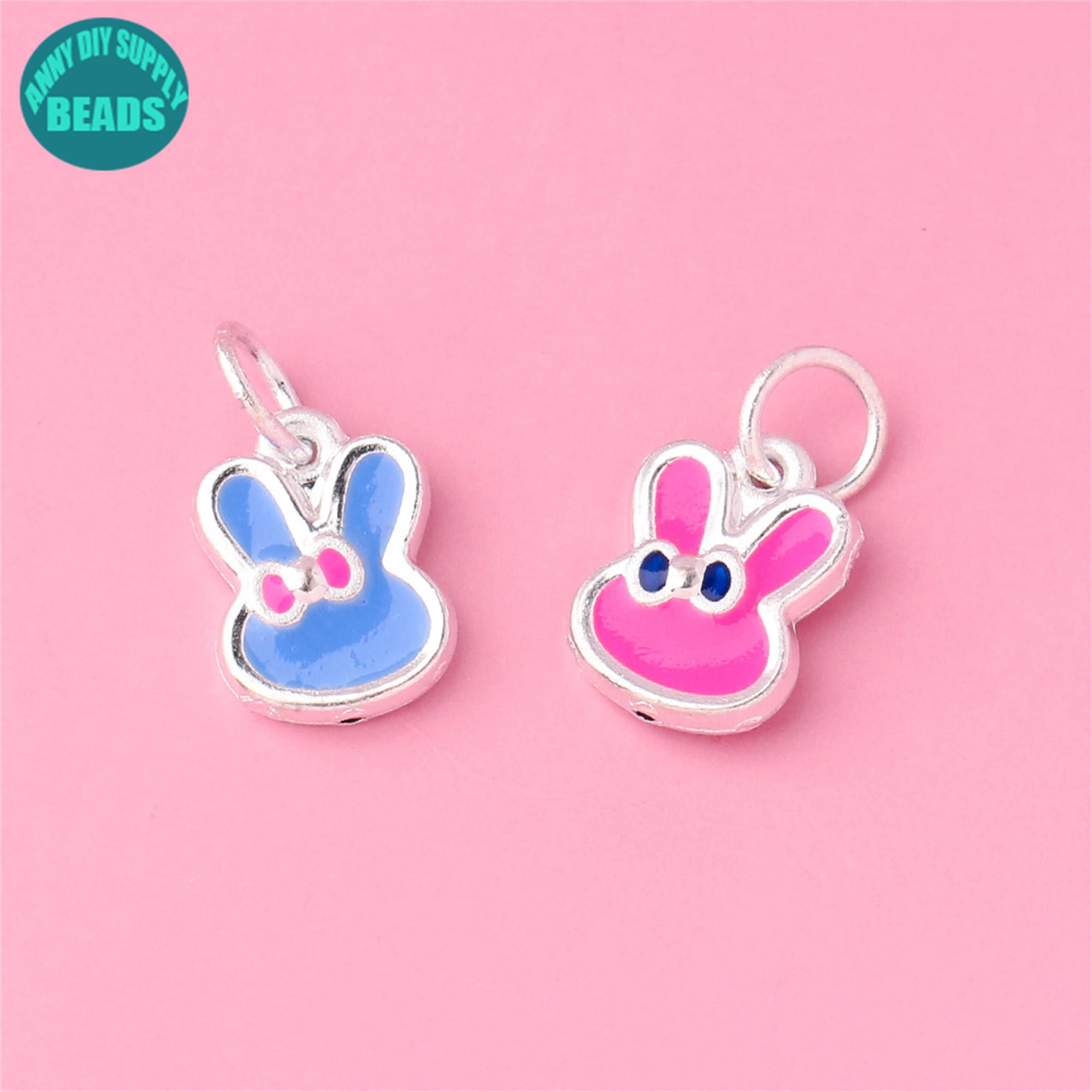 S999 3d Hard Silver Rabbit Charm,Oil Dripped Animal Charm,Necklace Charm,Bracelet Charm,Rabbit Pendant,Bunny Charms