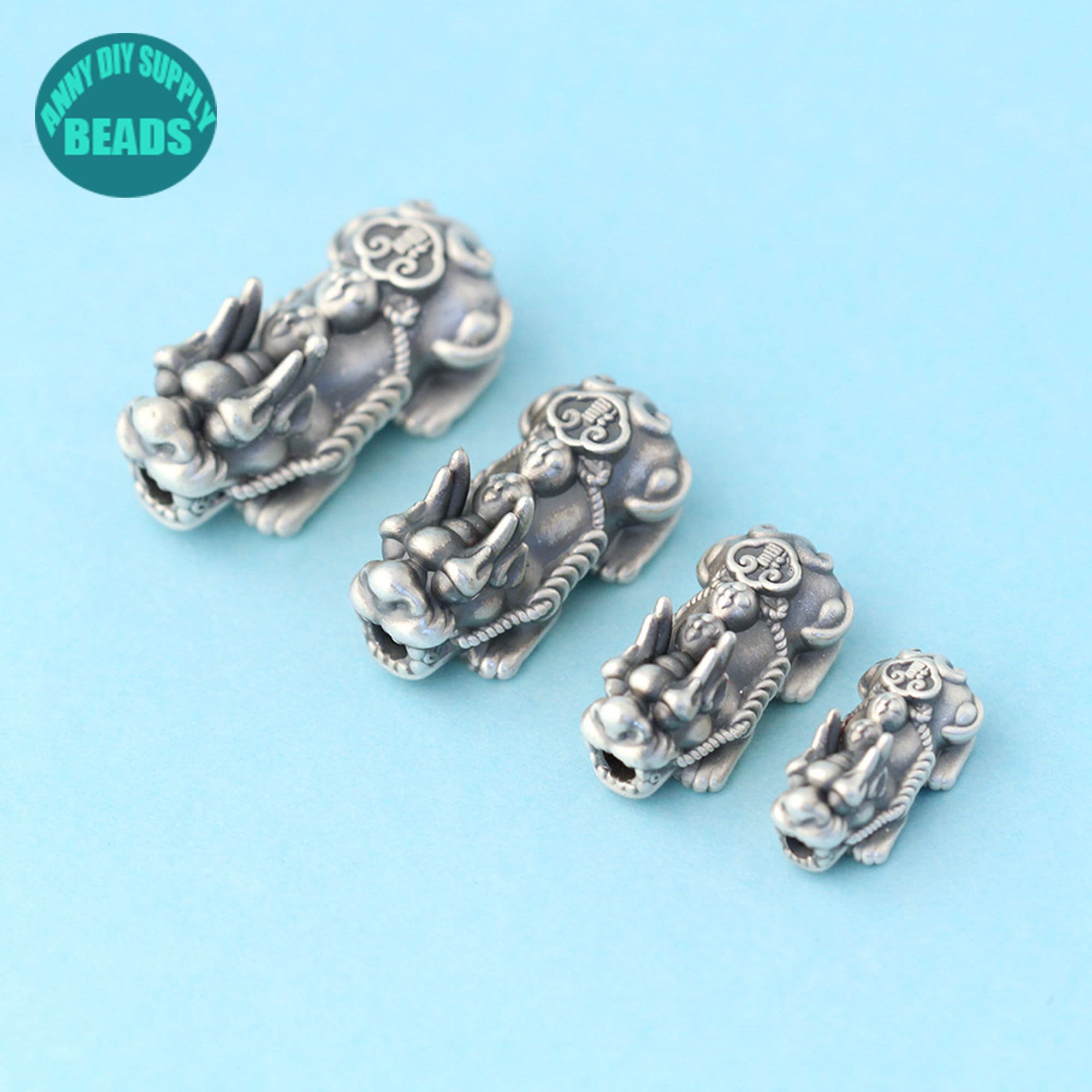 1PC S999 3D Hard Silver Chinese Traditional Pixiu Beads,Focal Beads,Pixiu Beads,Beads For Bracelets,Fortune Beads,Gift For Him