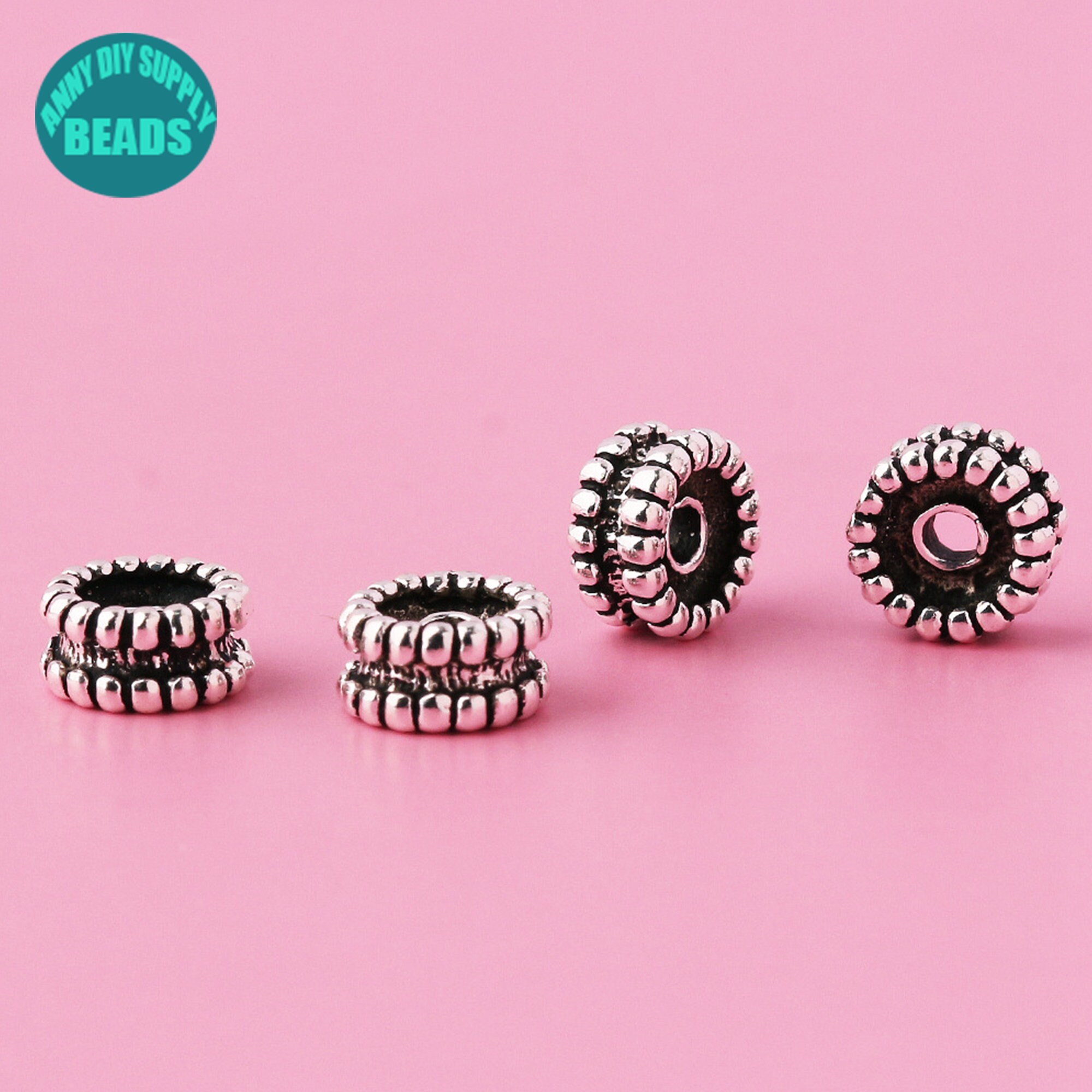 4.7mm S925 Sterling Silver Beads,Bracelet Spacer Beads,Antique Silver Beads,Wheel Beads,Spacer Beads,Big hole beads