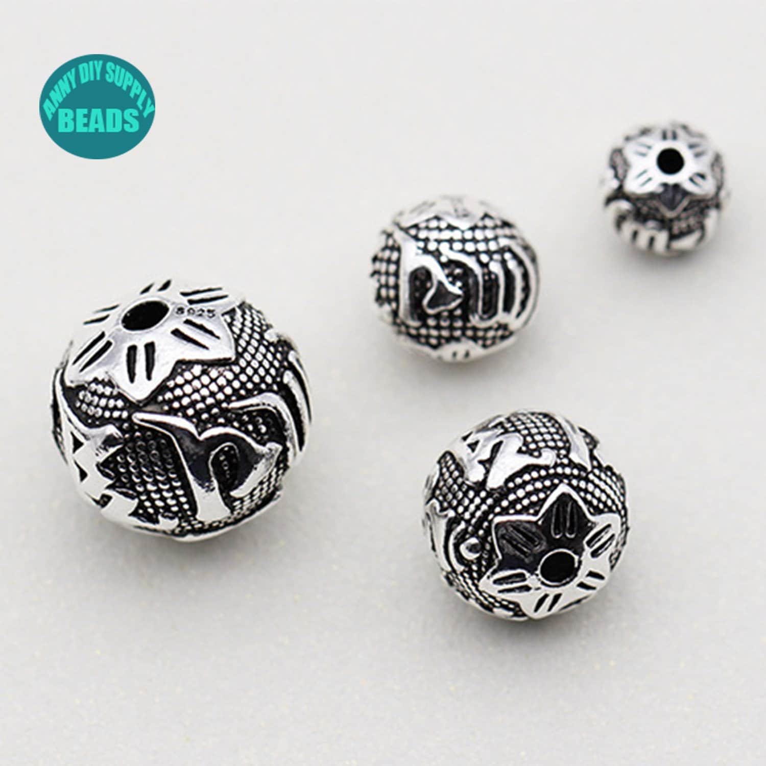 S925 Sterling Silver Beads,Antique Silver Beads,buddha Beads,Mala beads Supply,Bracelet Spacer Beads