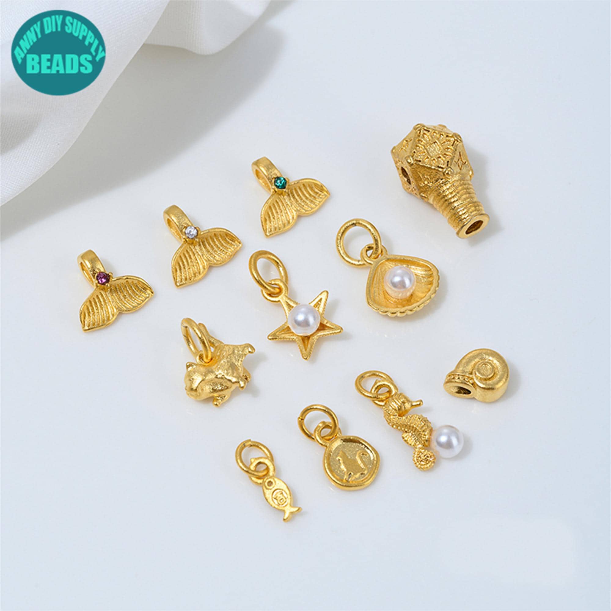 18K Real Matt Gold Plated brass Pendant,Bracelet Pendant,Star Charm,Dolphin Tail Charm,Sea charm,Ocean Charm