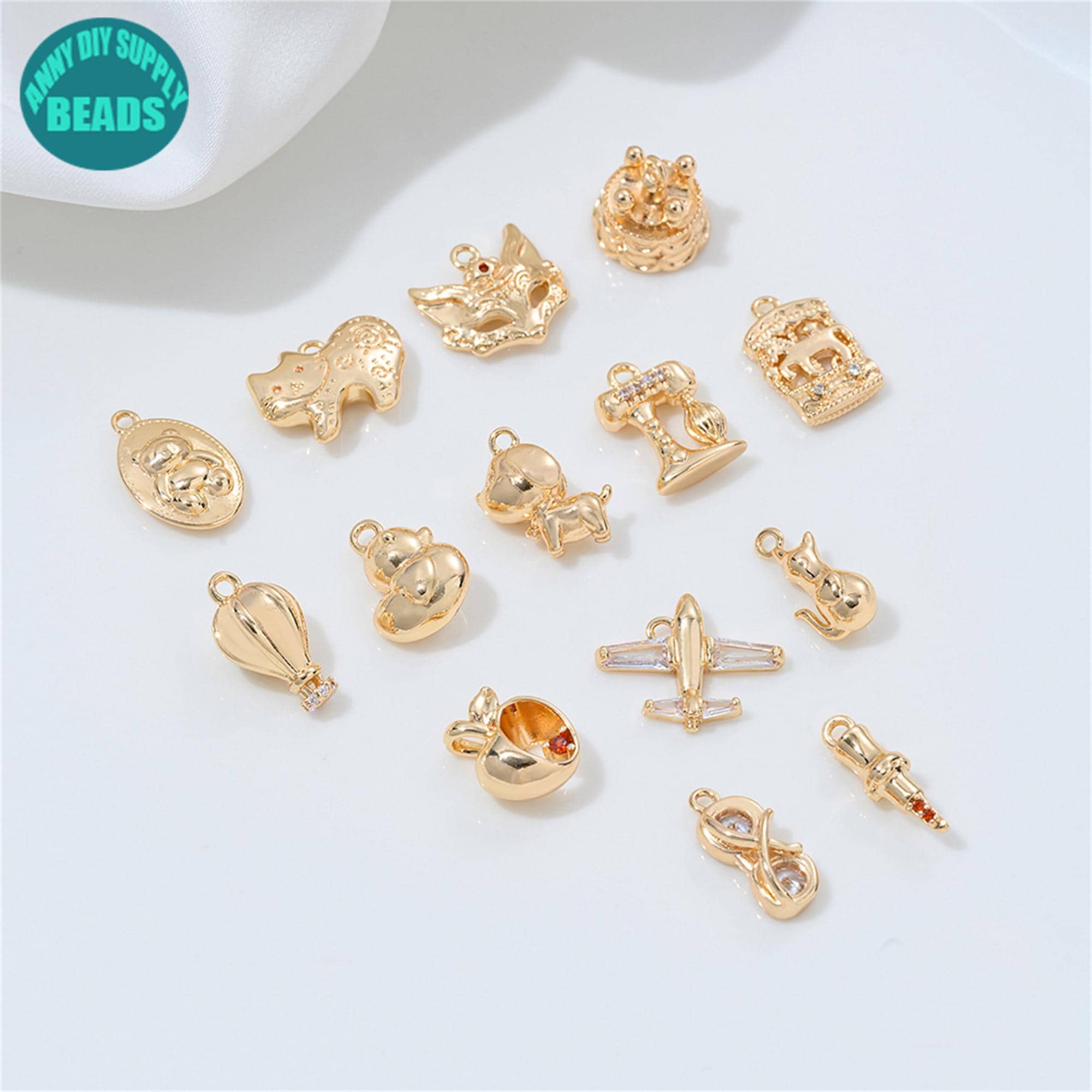 14k Real Gold Plated Cat Charm,Lotus Leaf Charm,bell of orchid Charm,Necklace Pendant,Jewelry Charm,Cat Charm,Bracelet Charm