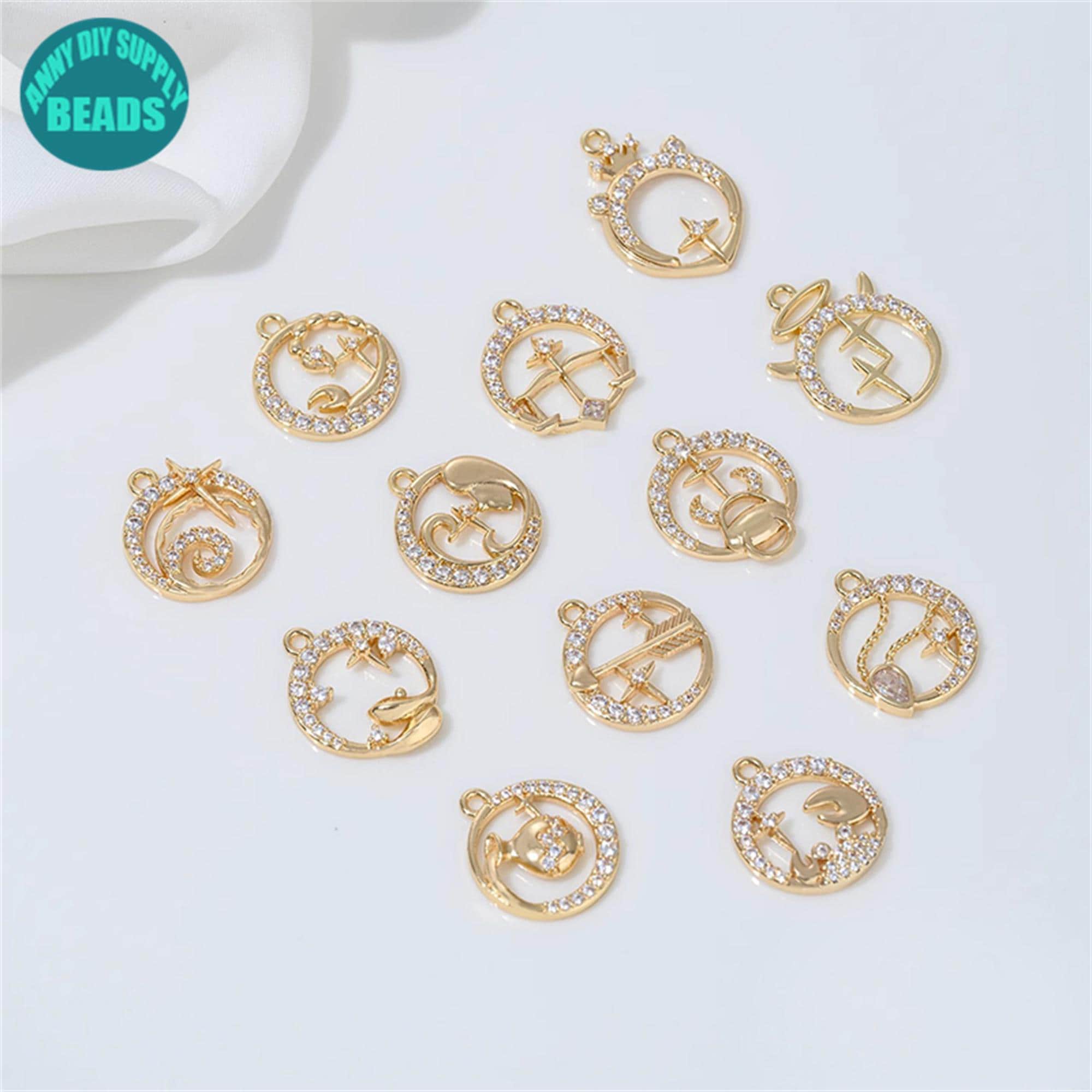 1pc 14k Gold Plated Constellations Charm,Zodiac Pendant,Zircon Paved Zodiac charm,necklace charm,necklace pendant