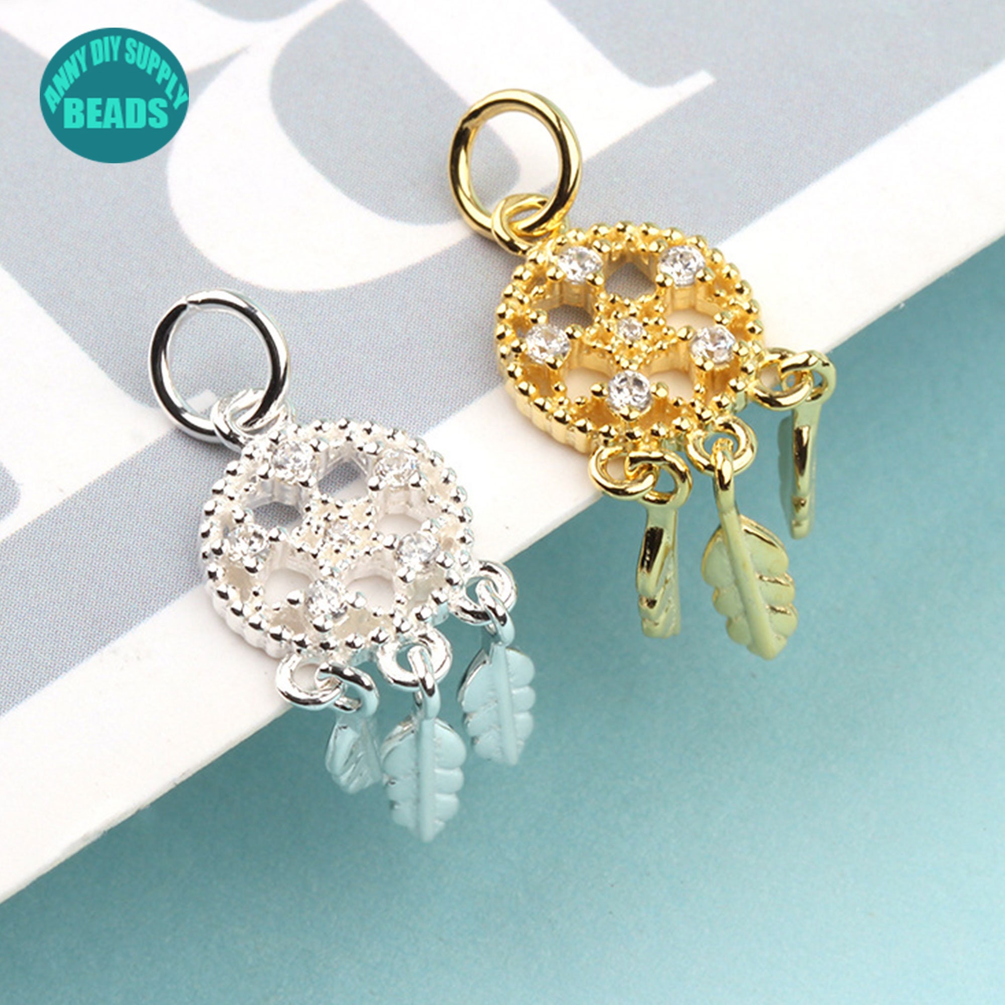 S925 Sterling Silver Dream Catcher Charms,Dream Catcher Pendant,Silver Pendant,Silver Charms,Earring Charm,CZ Charm