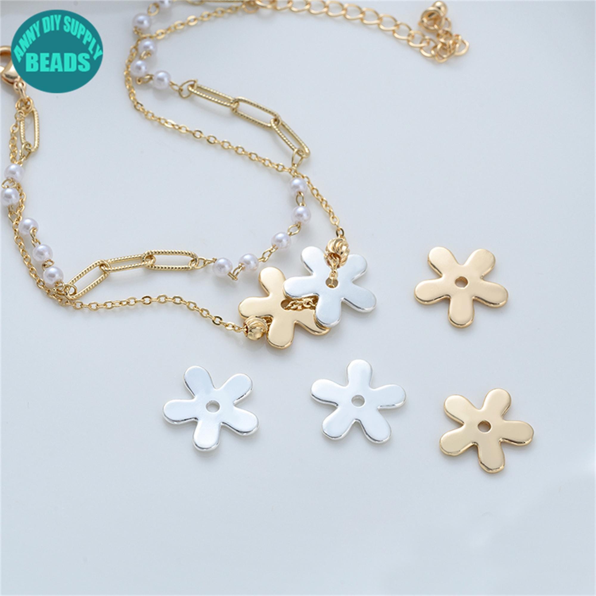 15mm 14k Gold Plated Flower Charms,cute Flower Beads,Five-petaled flowers Beads,DIY Jewelry Making Beads