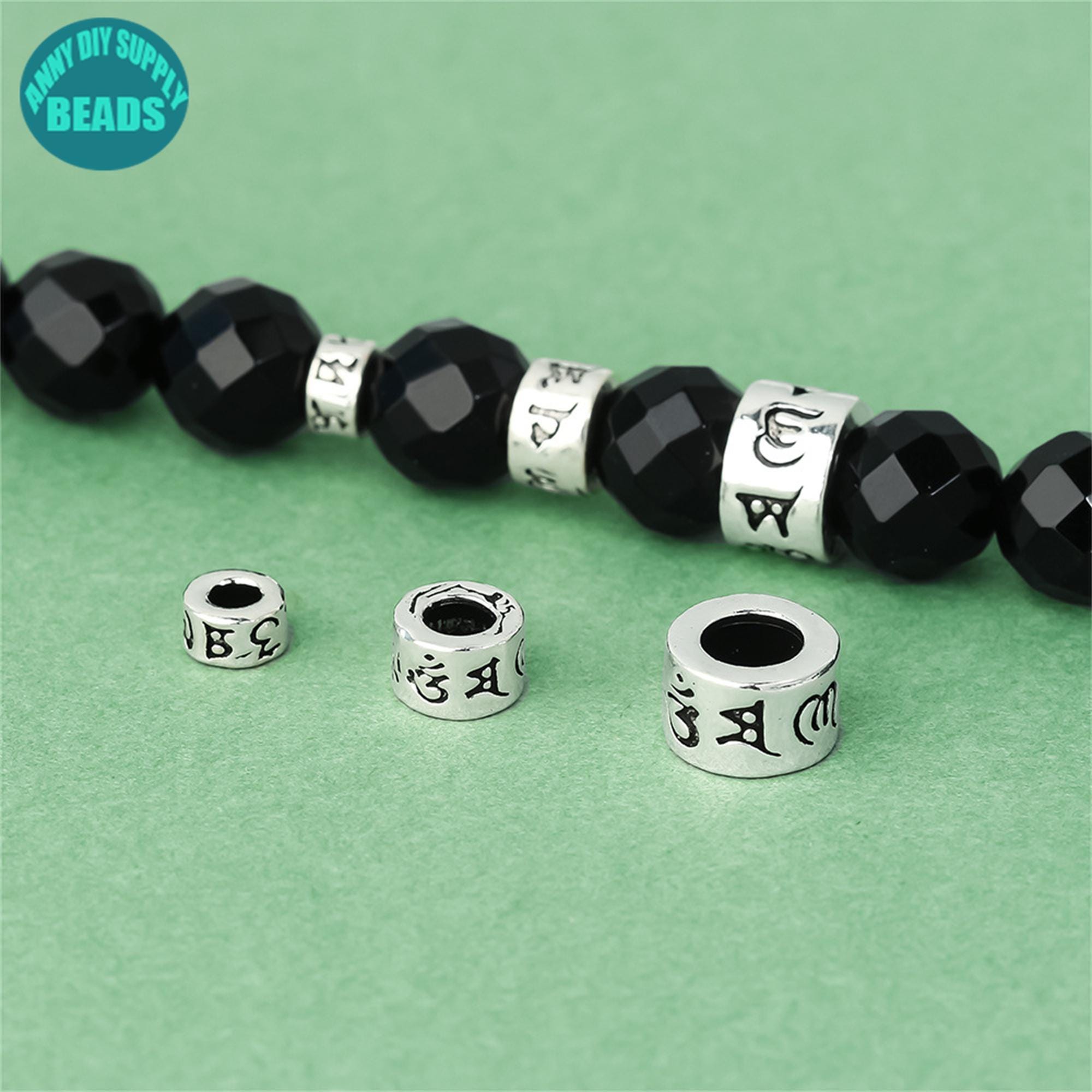 1/5/10/20PCS S925 Sterling Silver circle beads,bracelet Spacer beads,Large Hole tube Bead,Donut beads,Tibetan Om Mantra beads