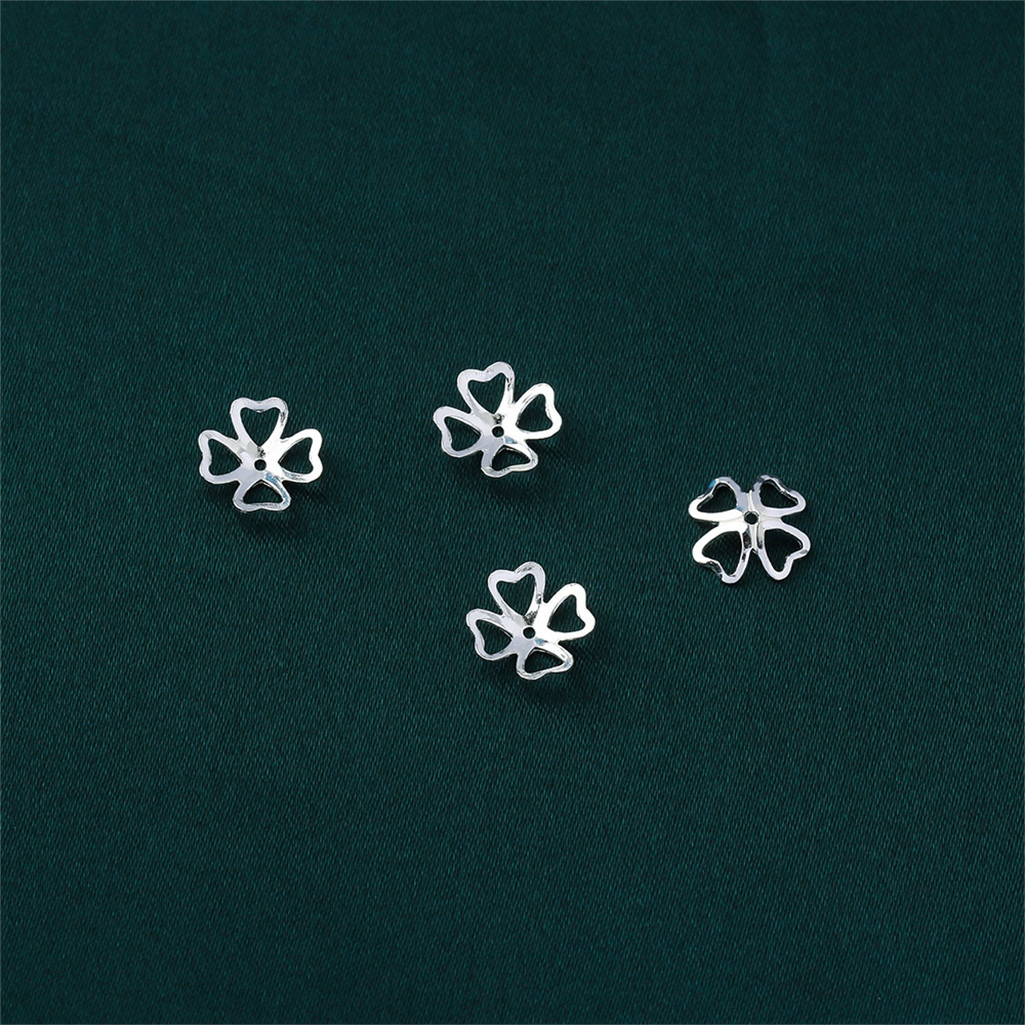 10/50PCS S925 Sterling Silver Bead Caps,Clover bead caps,8mm Bead Cap