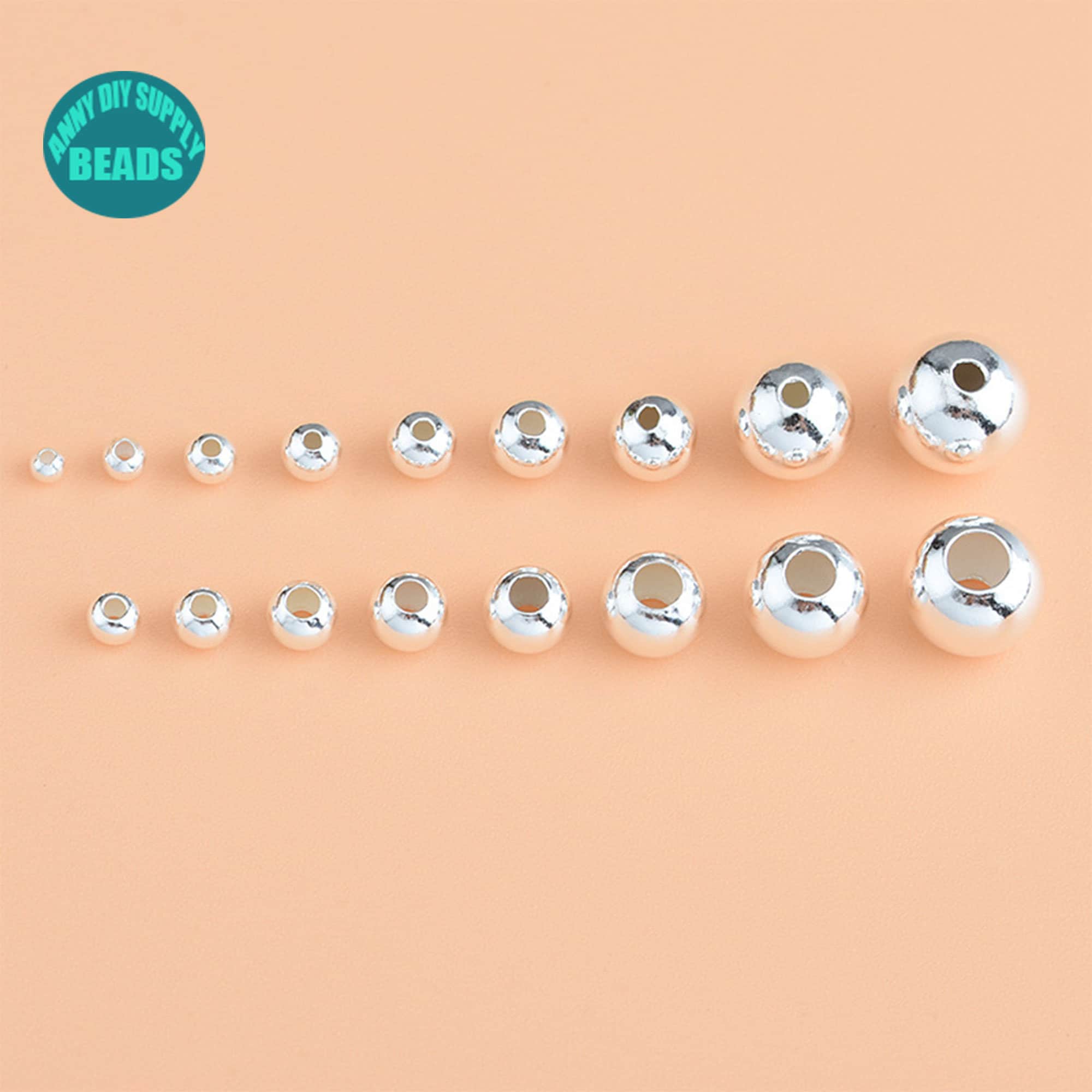 S925 Solid Sterling Silver smooth Round beads,Bracelet Spacer Beads,S925 Sterling Silver large hole beads,Tiny Silver Beads,Silver Beads