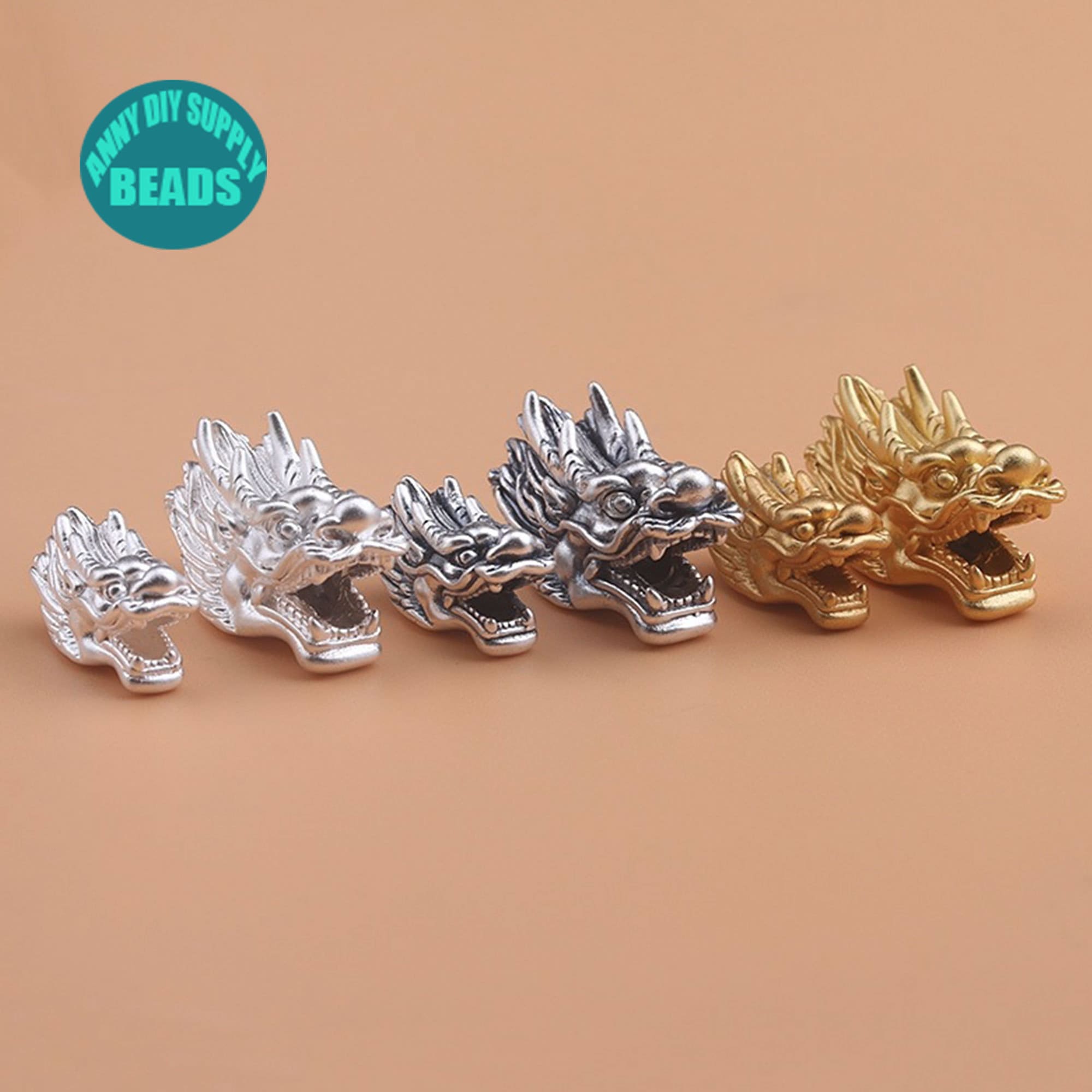 S999 Fine Silver Dragon Beads,3D hard Silver Dragon beads,Man Bracelet Beads,Silver Animal Beads,3D Dragon Silver Beads,Light Weight