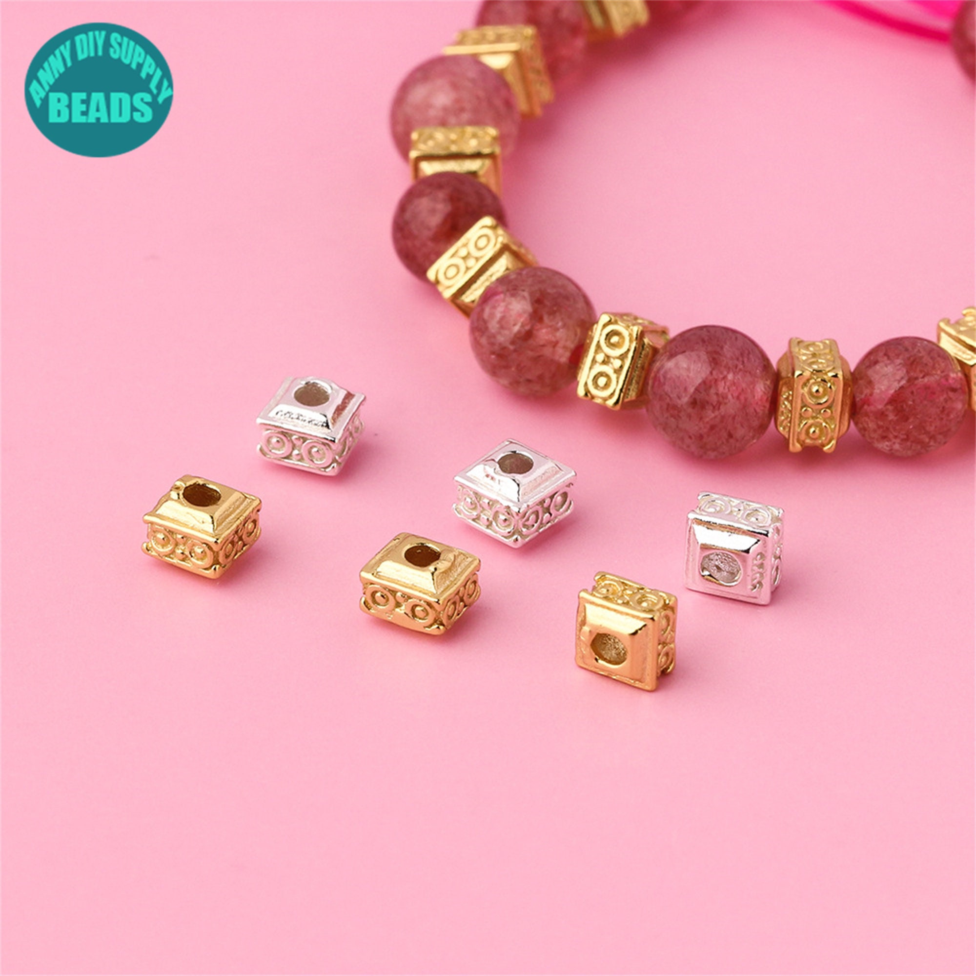 S925 Sterling Silver Tiny Cubic Spacer Beads,Sterling Silver Beads,Bead Spacers,Bracelet Beads,Silver Beads,4.6mm
