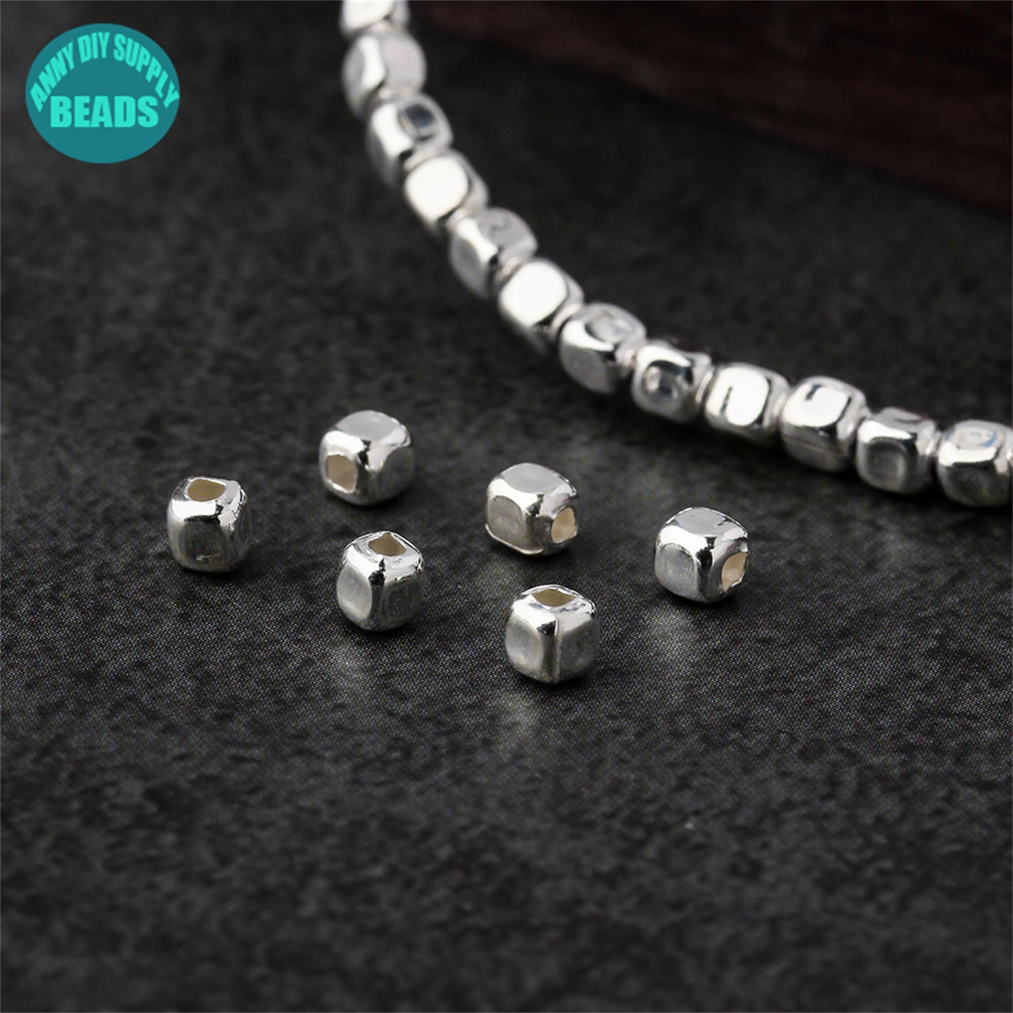 S925 Sterling Silver Tiny Cubic Beads,Silver Beads,925 Sterling Silver Beads,Tiny Silver Beads,Spacer Beads