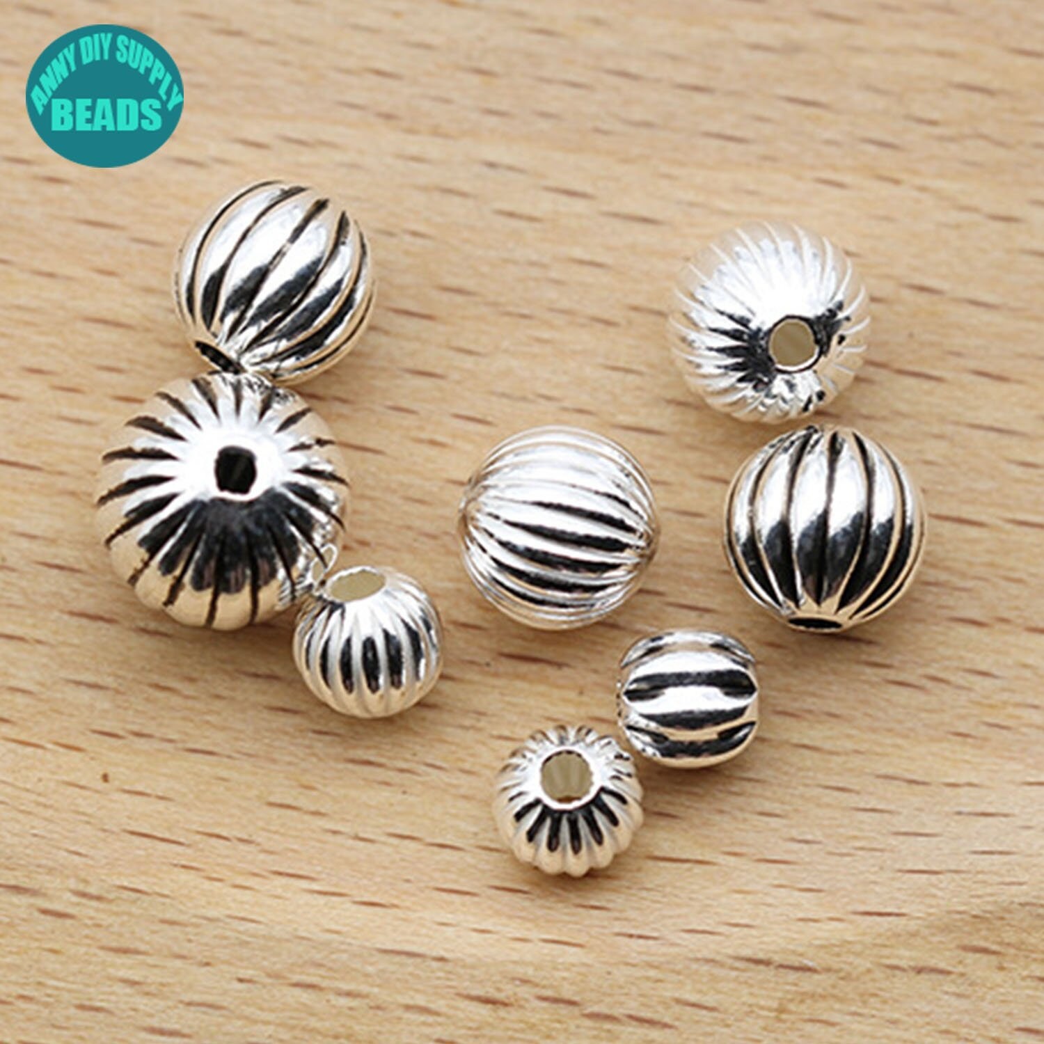 S925 Sterling Silver Pumpkin Beads,Antique Silver Beads,Bracelet Spacer Beads,Jewelry Beads Supply