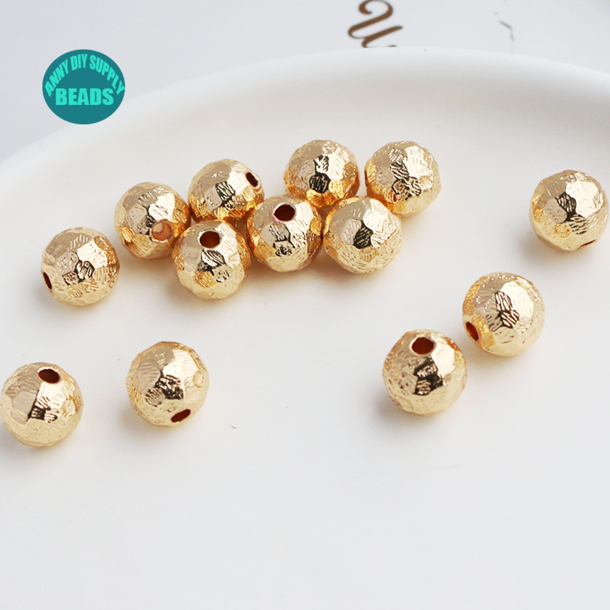 10mm 14K Gold Plated brass Spacer Beads,Gold Plated Faceted Round Spacer Beads