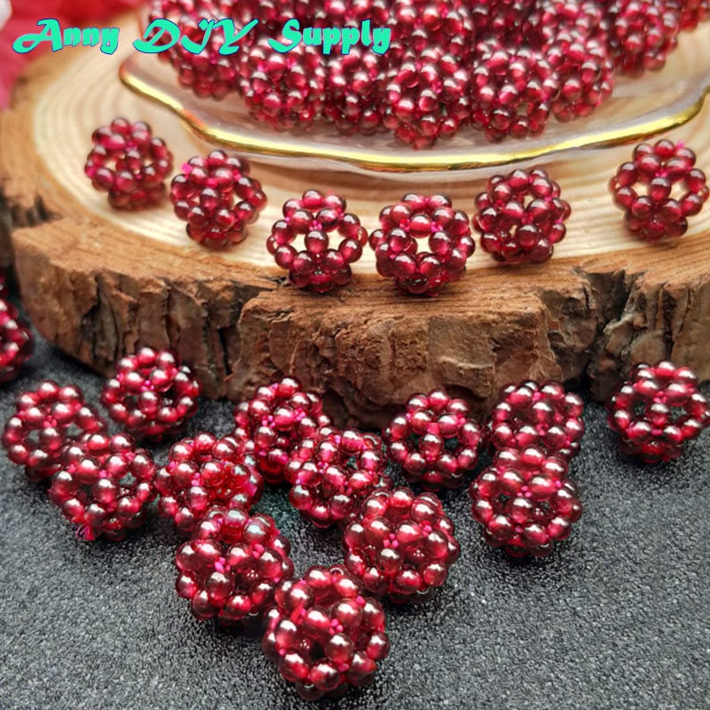 Hand woven garnet flower beads