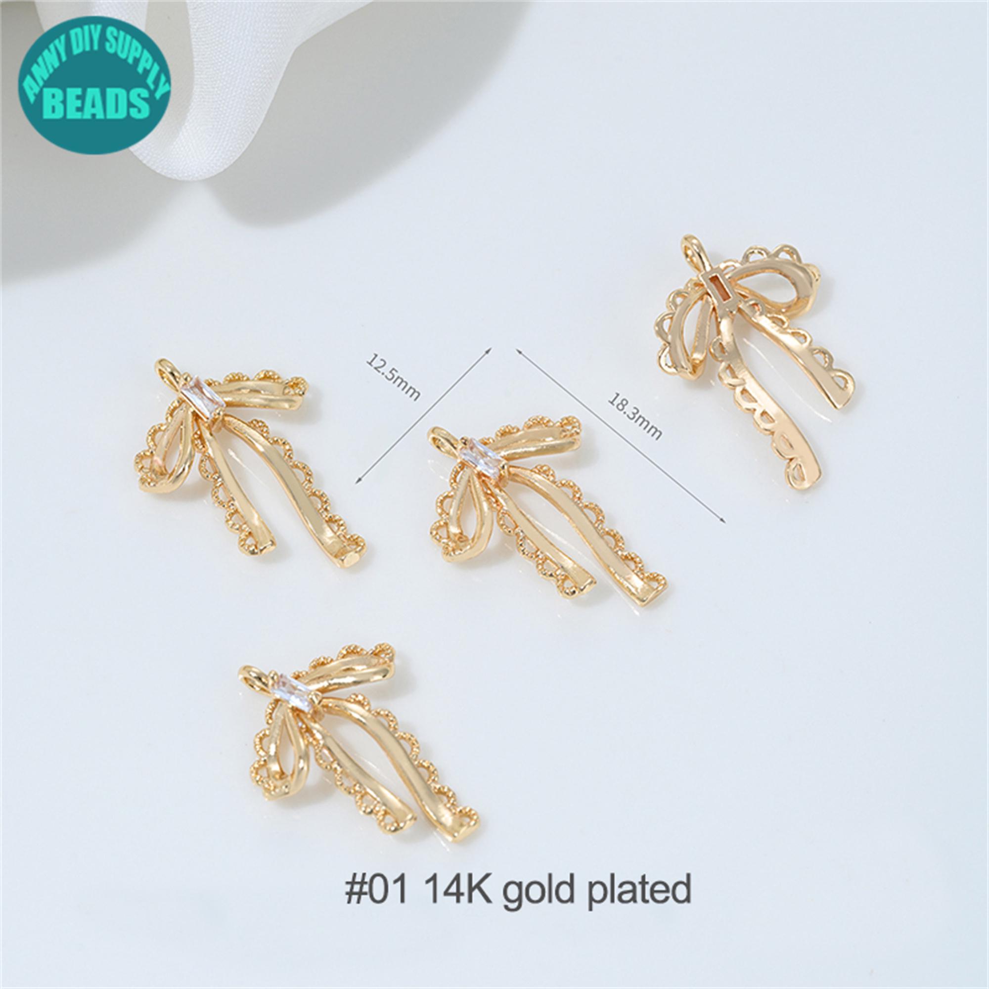 14k Gold Plated Cute Bow Charm,Flower Pendant,Earring Pendant,Wholesale Charms,Charms For Earrings,Necklace Pendant