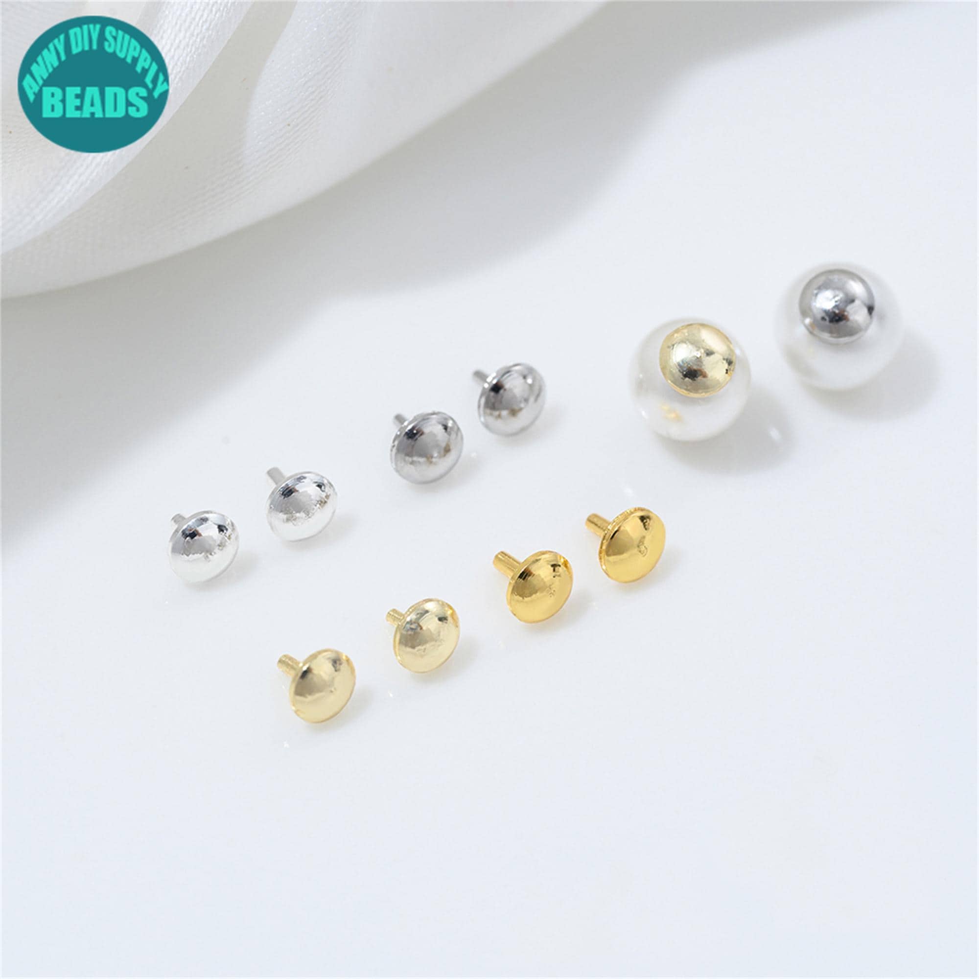 14K Gold plated Brass bead caps with peg,For Half Drilled Beads Bead Caps with 6mm Spring Clasp,Bail Pegs