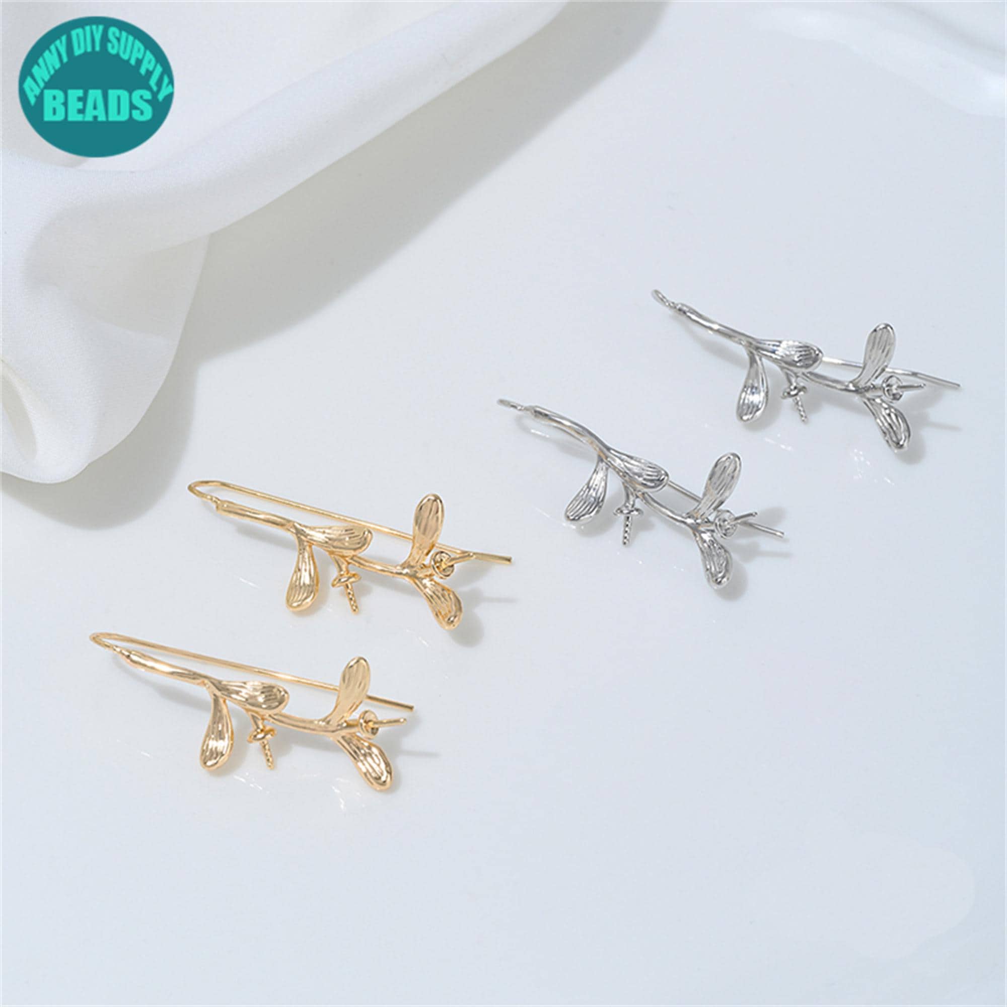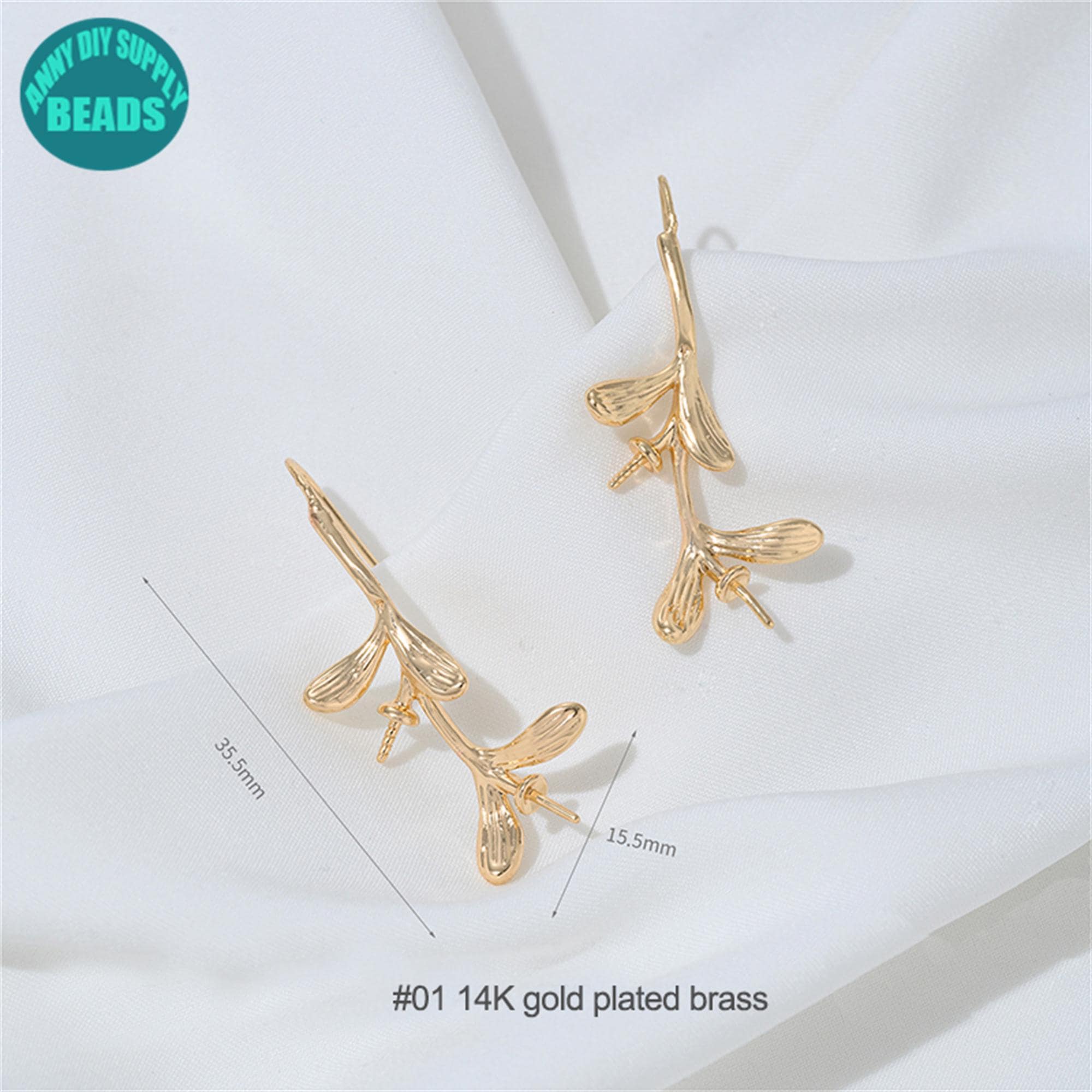 14k Real Gold Plated Brass Leaf Earring Hook,Earring Hook with Peg,Wire Earring Hook,Can Attached pearls,Earring Making supply
