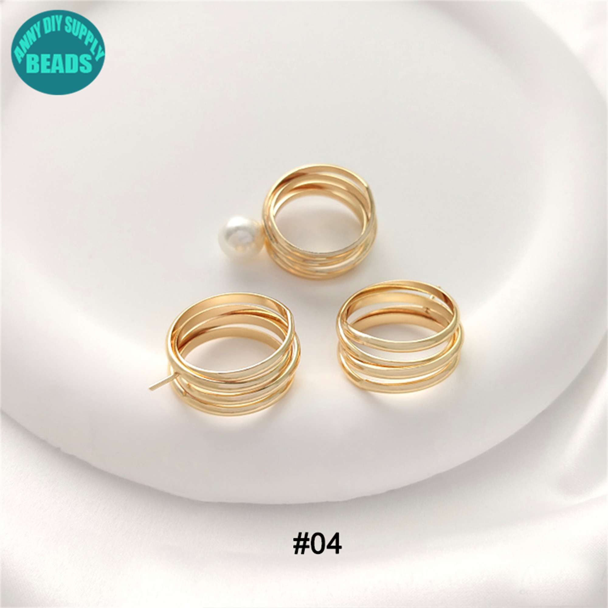 14K Gold Plated Brass Rings,Finger Ring for half Hole beads,Ring Support with Peg,Ring Findings,Jewelry Findings,Adjustable Finger Ring