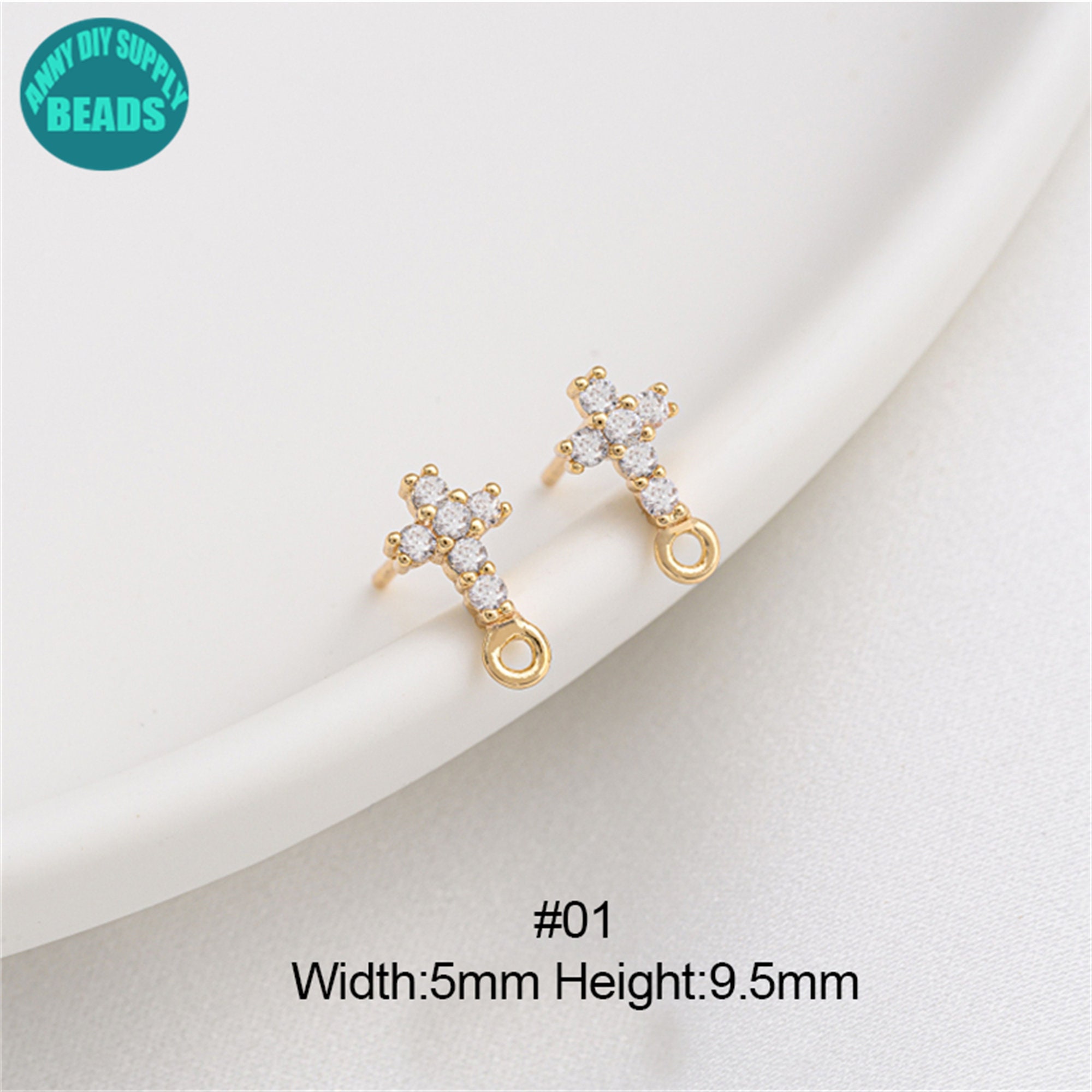 14k Gold Plated Buterfly Earring Stud,CZ Paved Earring Stud With S925 Sterling Silver Needle,Cross Earring Post with Loop
