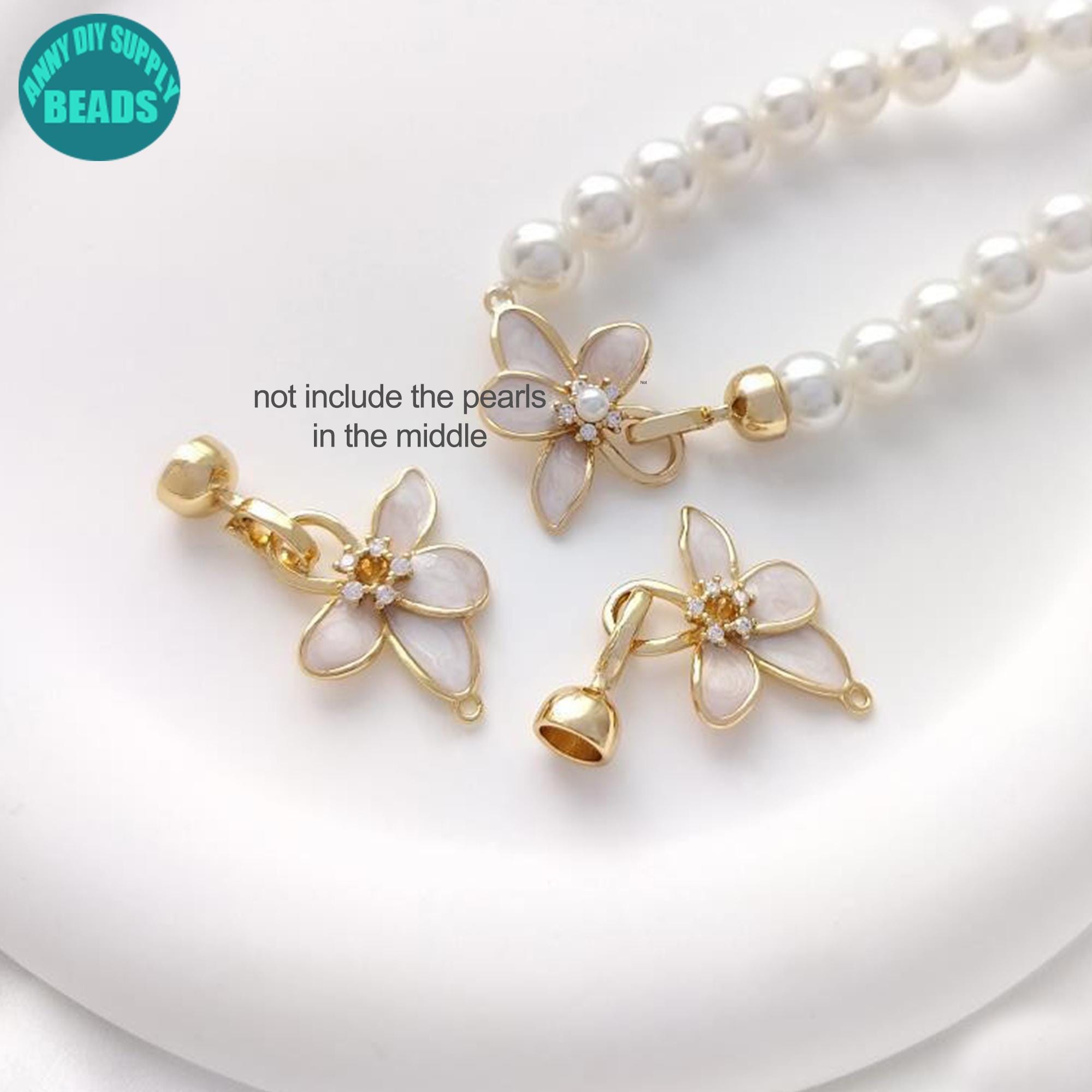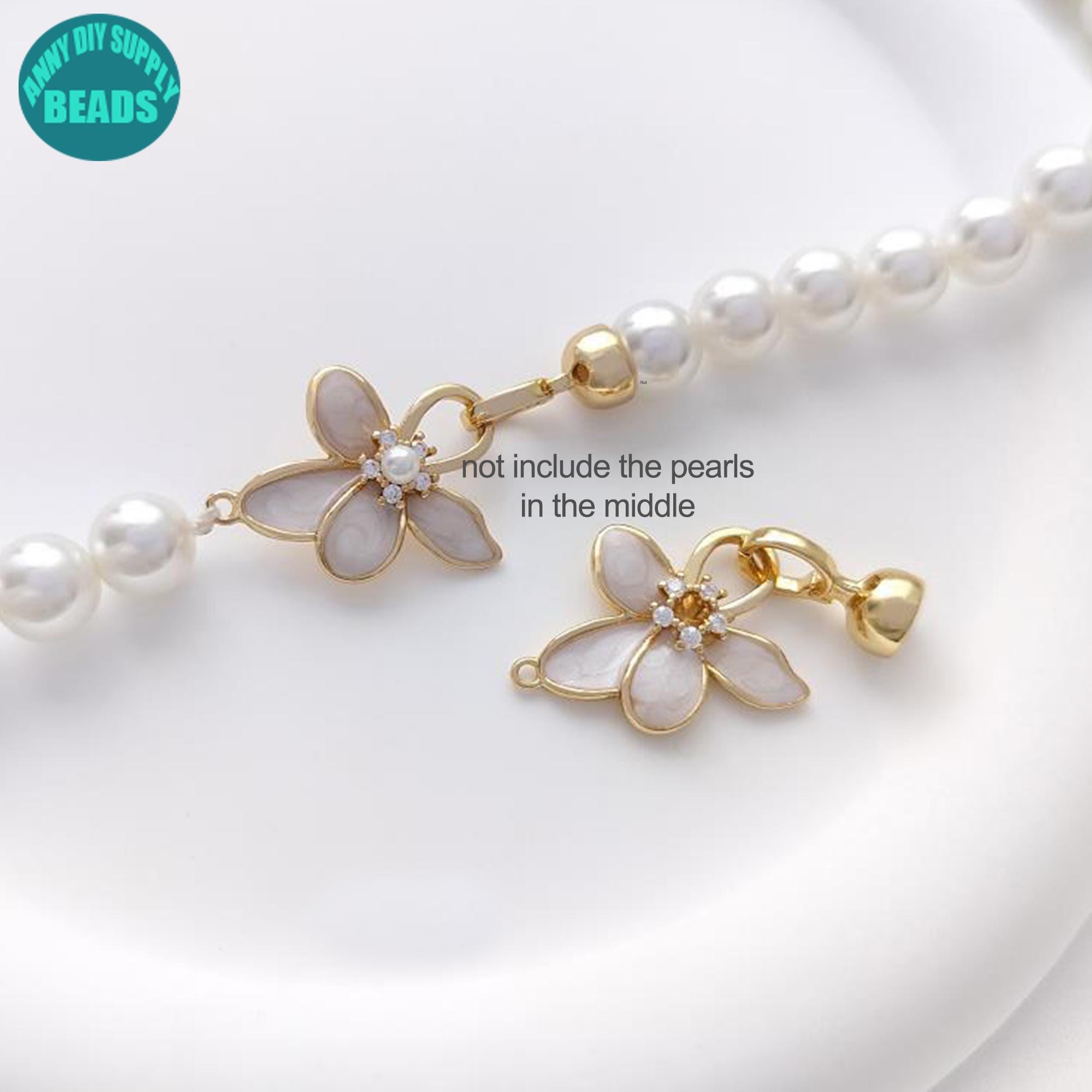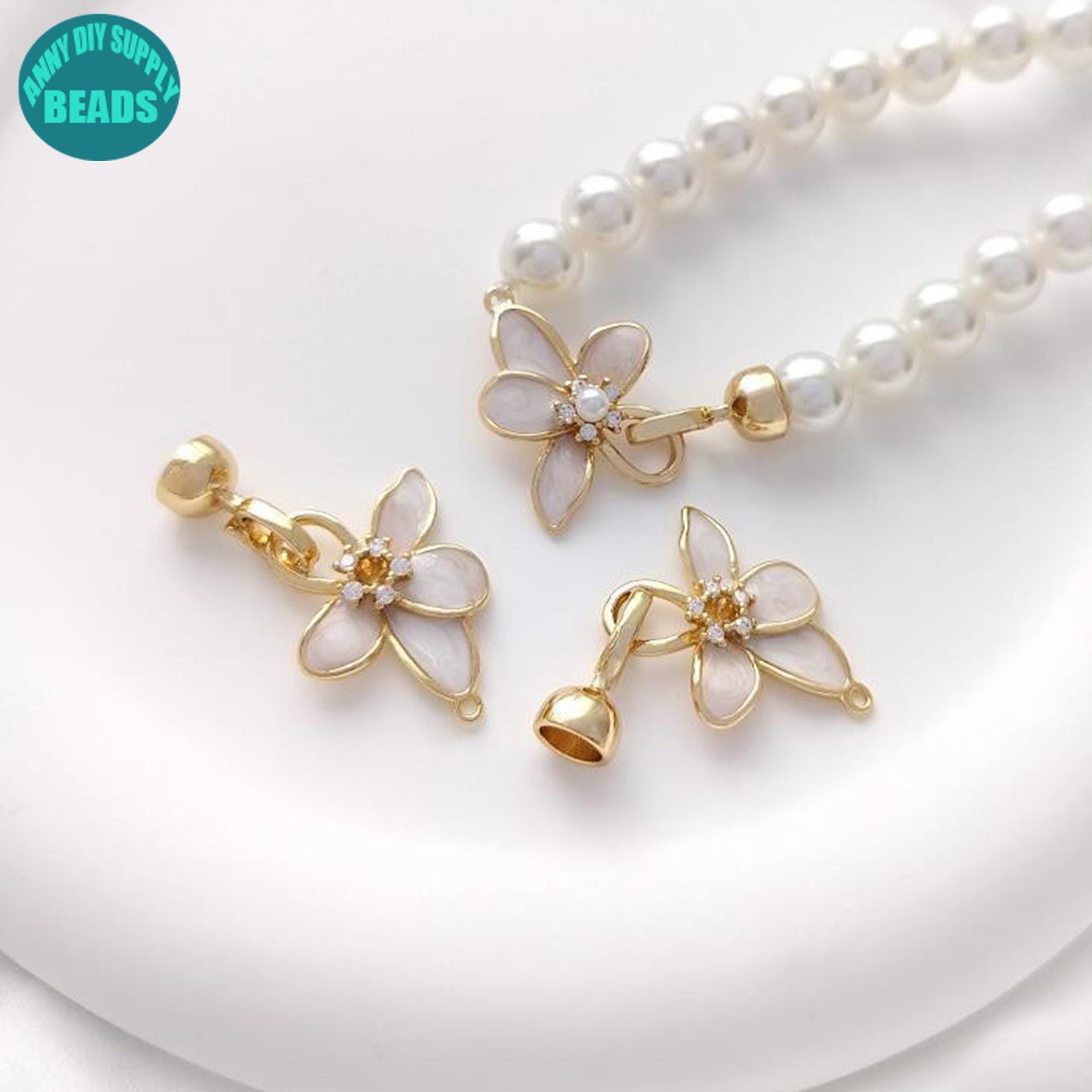 1/5/10Set 14K Real Gold Plated Flower Clasp,14K Gold Plated Pearl Clasp With caps,Necklace Hoop Clasp,DIY Jewelry Making Supply