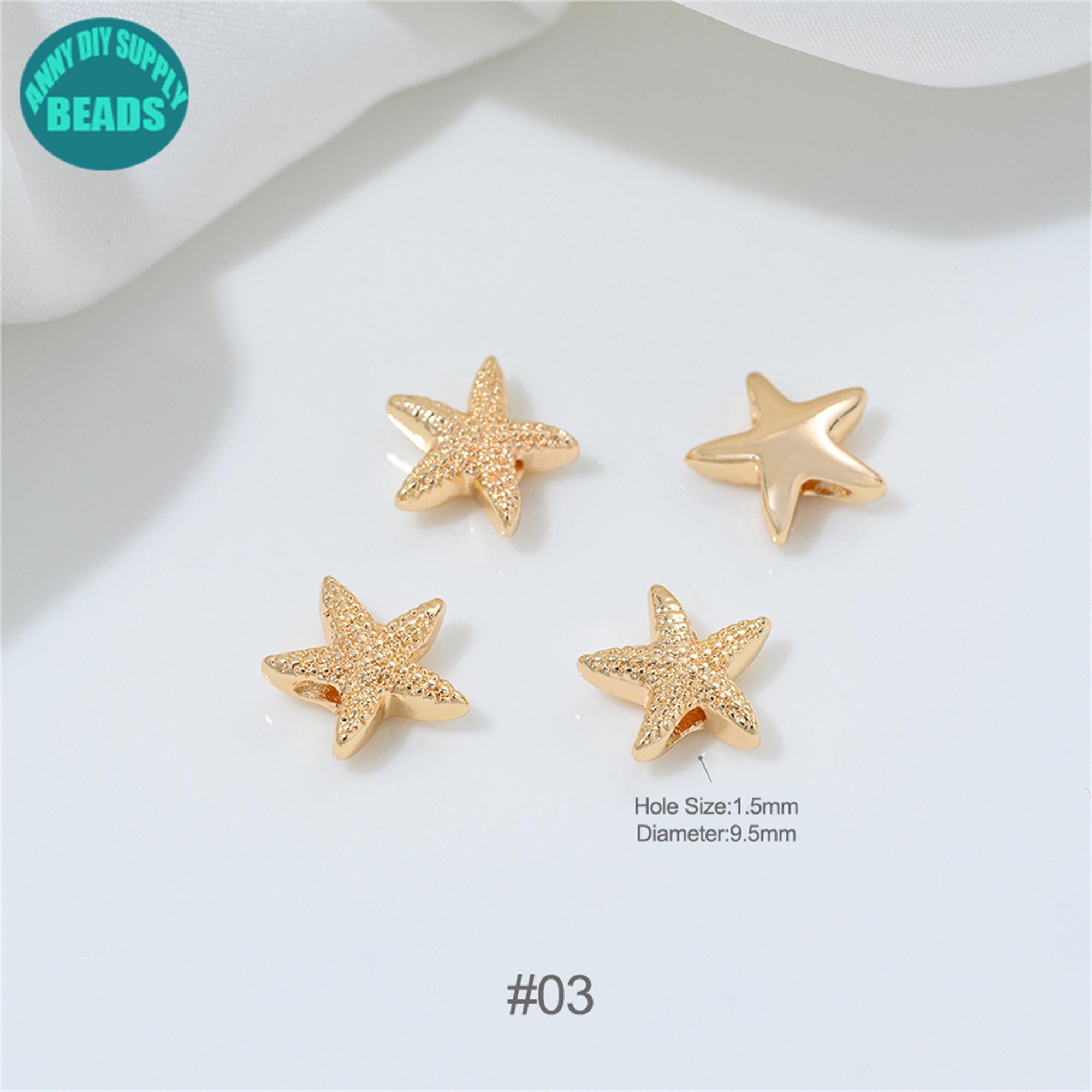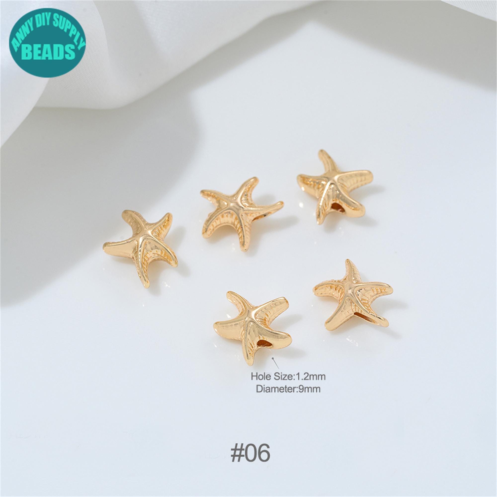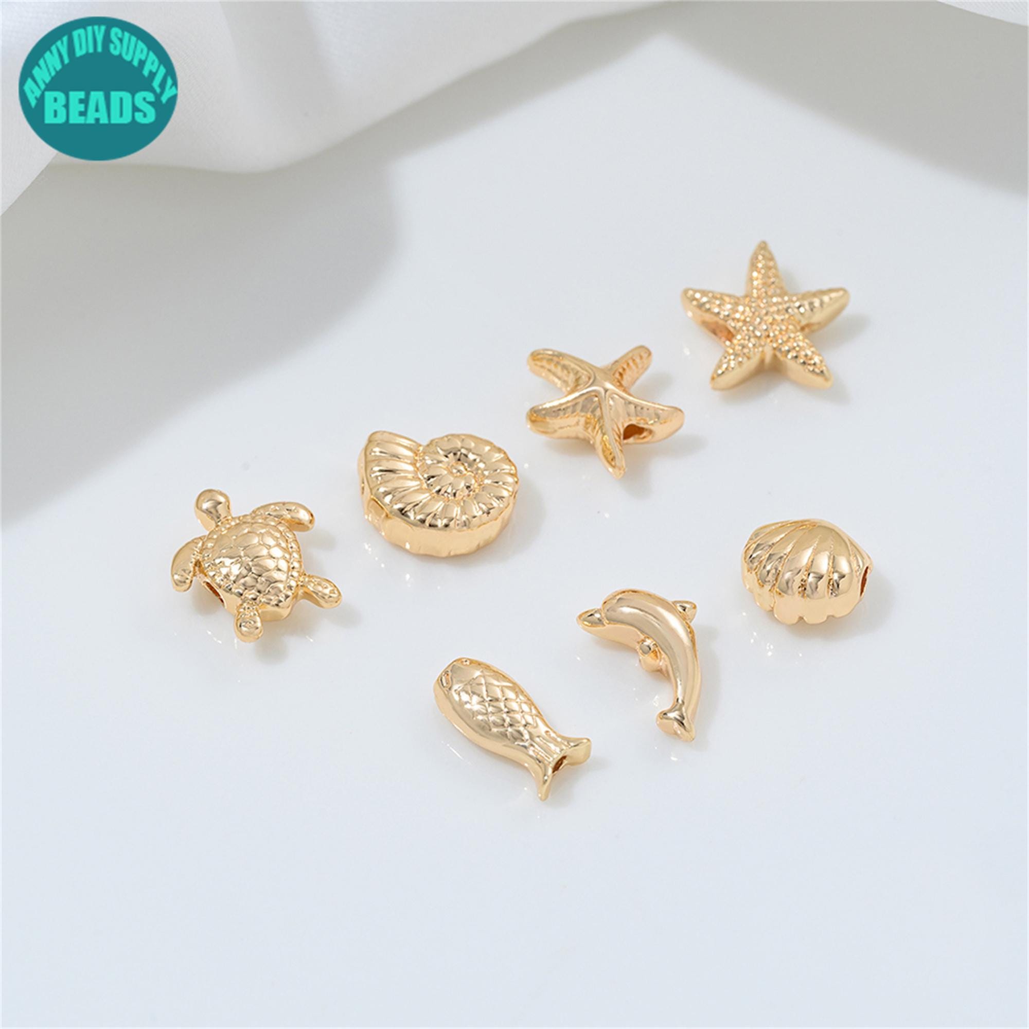 14k Gold Plated Ocean Beads:Starfish,Turtle,Fish,Conch,Dolphin