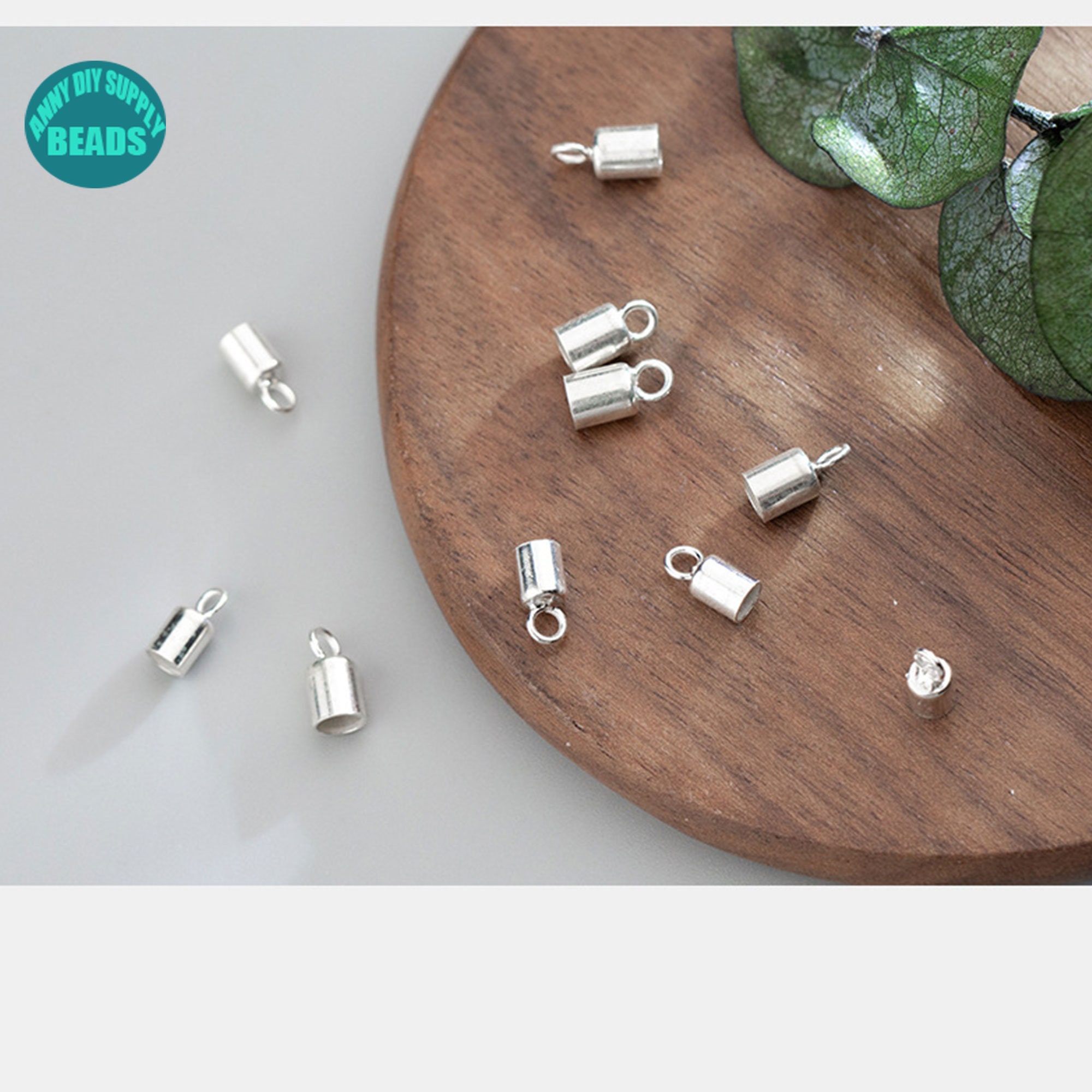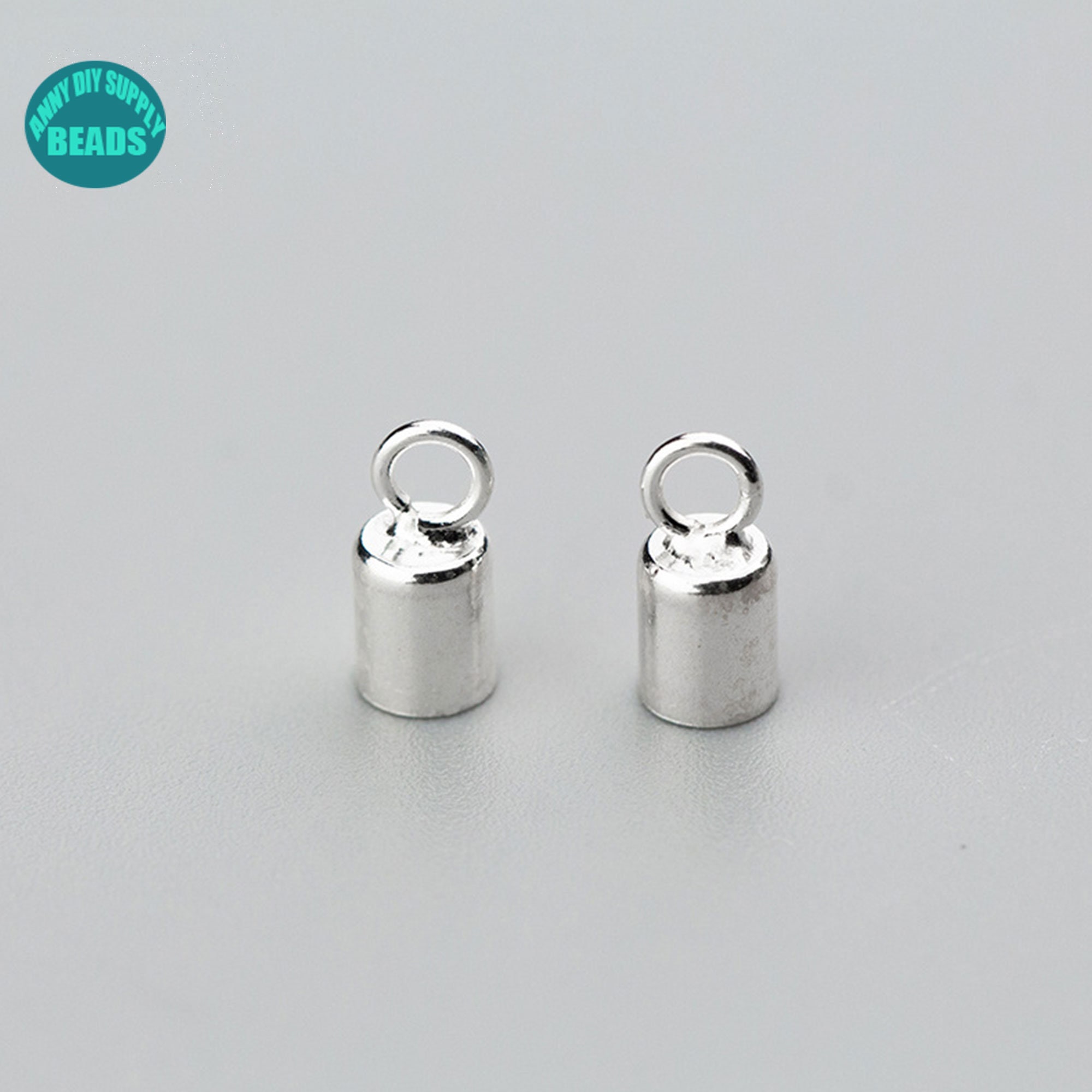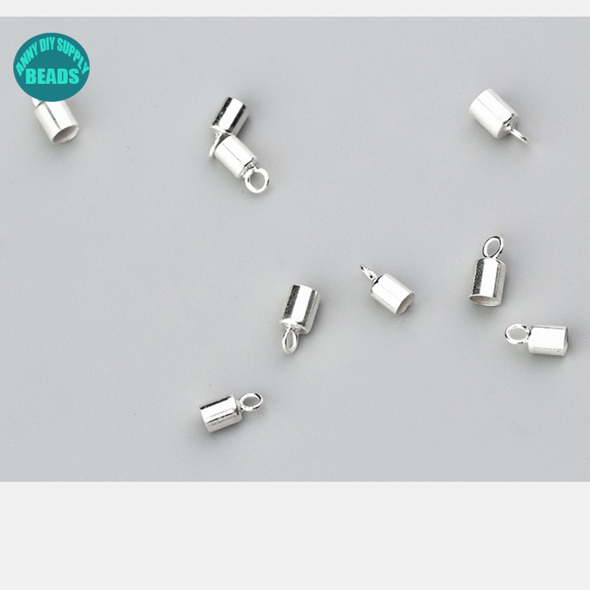 2/10/20pcs Sterling silver Cord Ends Cap,End Caps Clasps,Bracelet Leather Cord End Caps,Silver End caps with Closed Ring,for 2-4mm cord