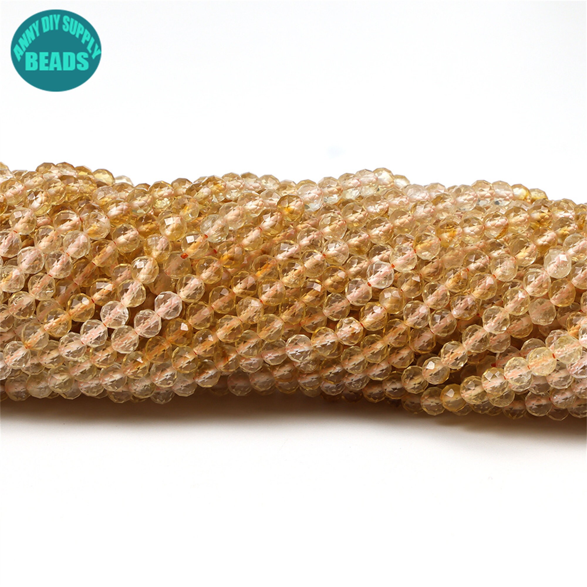 4mm Faceted Round Citrine Gemstone Beads,Tiny Faceted Gemstone beads,Gradient Citrine Beads,Tiny Yellow Gemstone Beads,Full Strand 15”