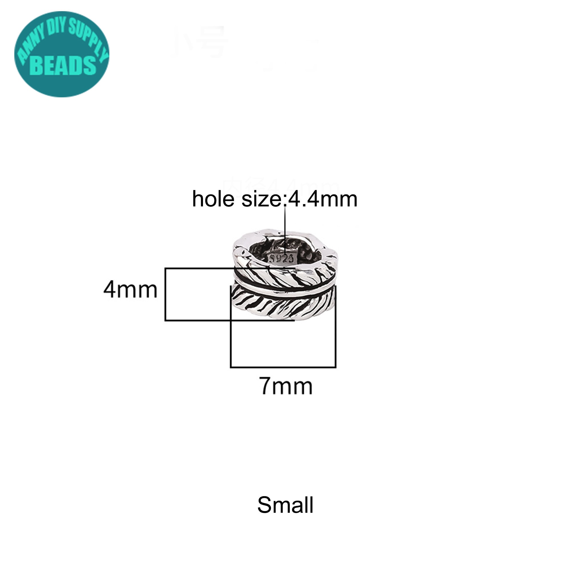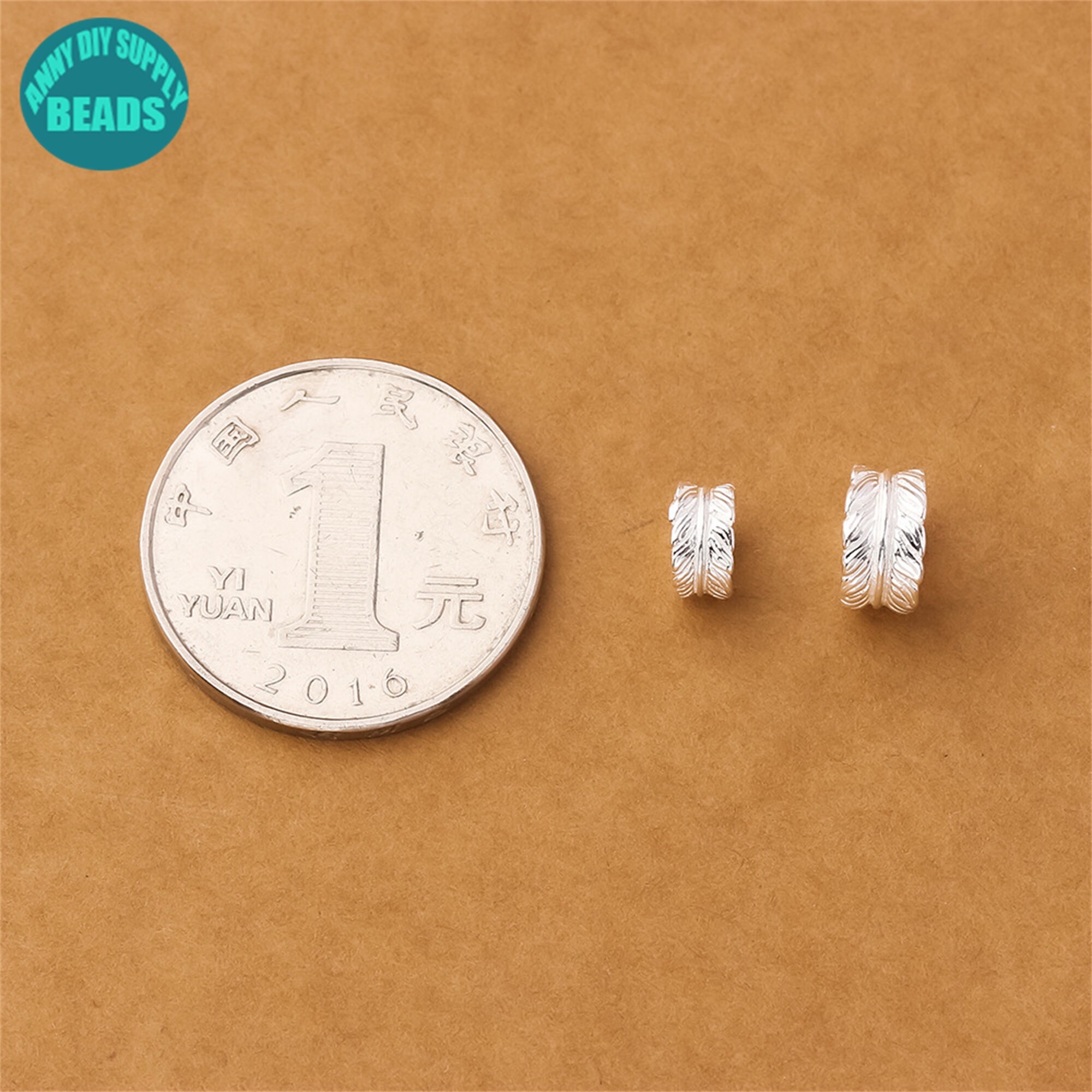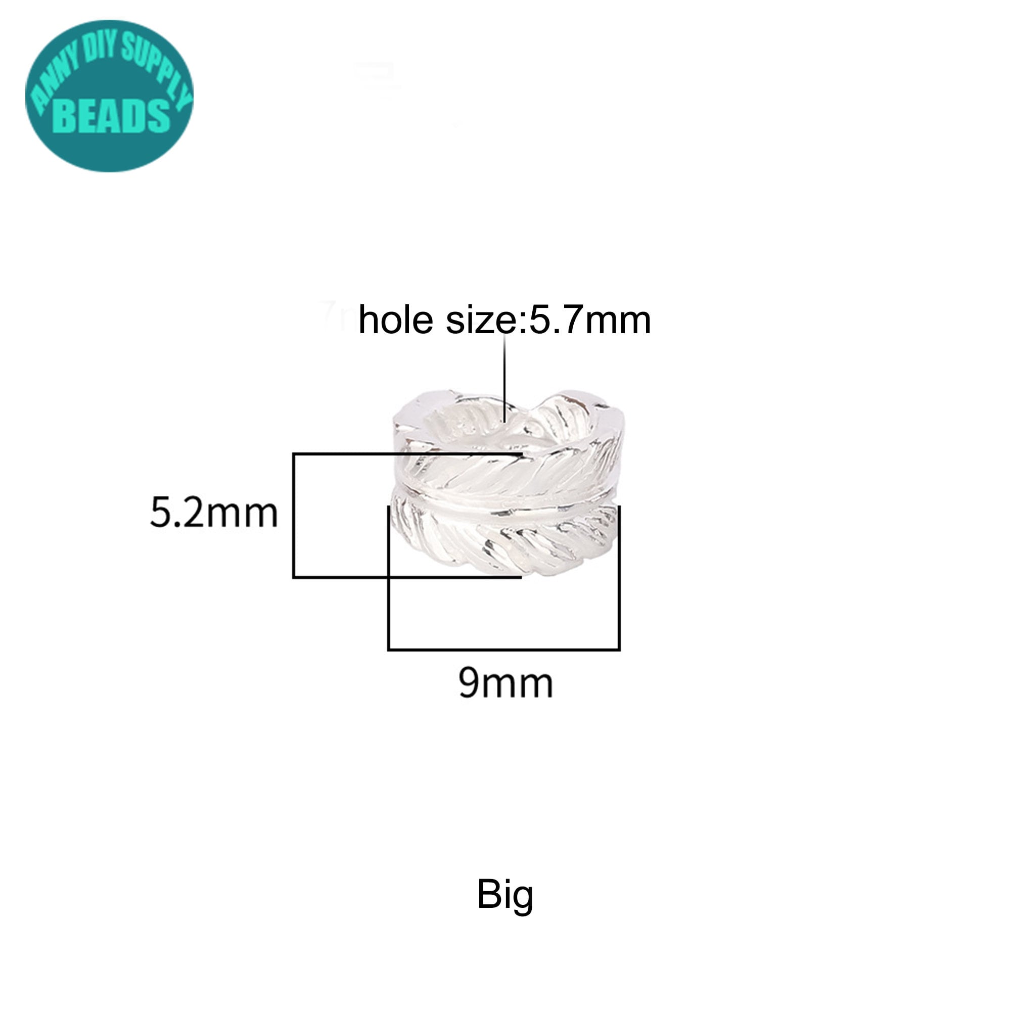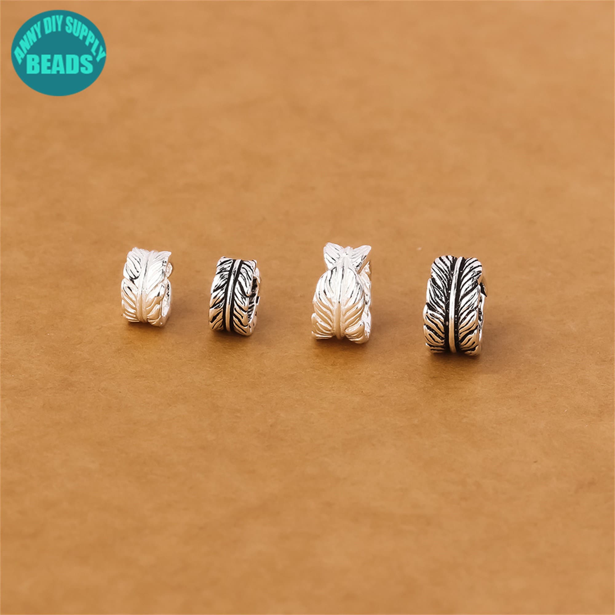 7/9mm S925 Solid Sterling Silver Feather Beads,Silver bead spacer,Silver Beads,feather charm,Large hole beads