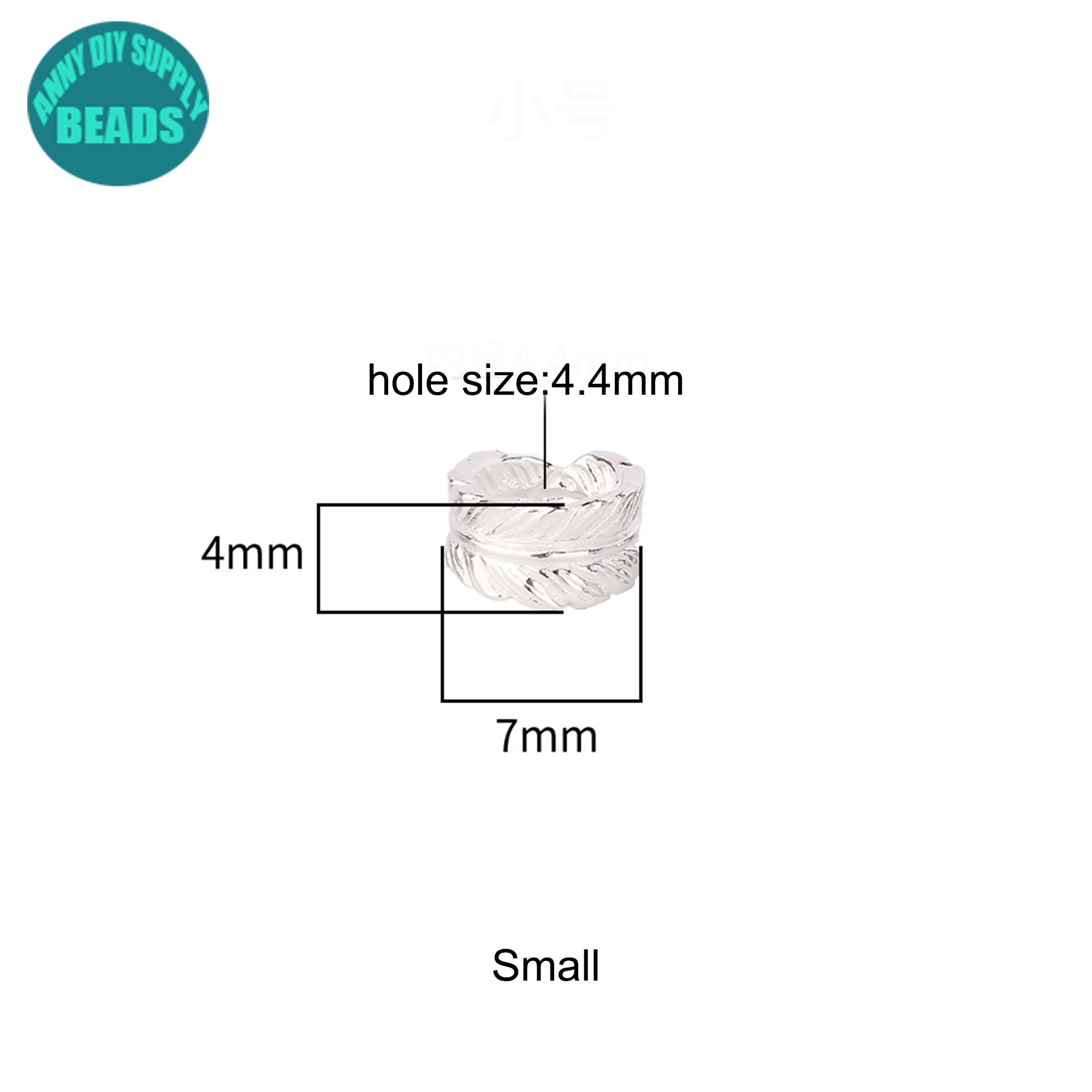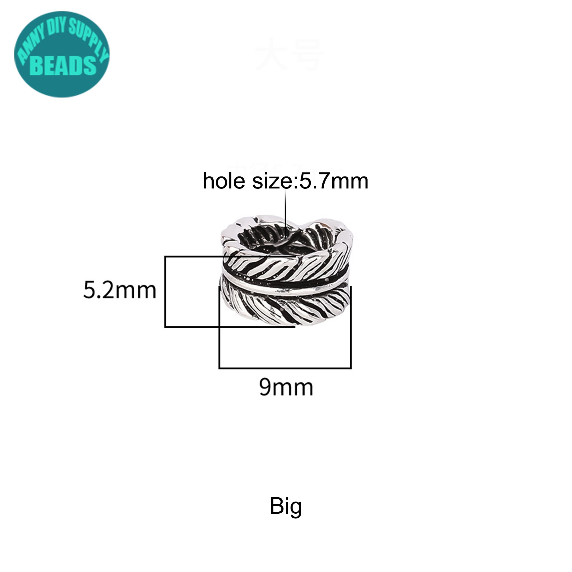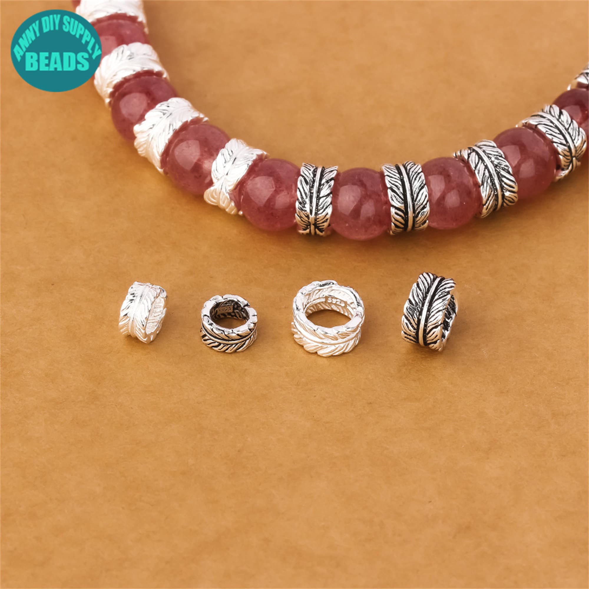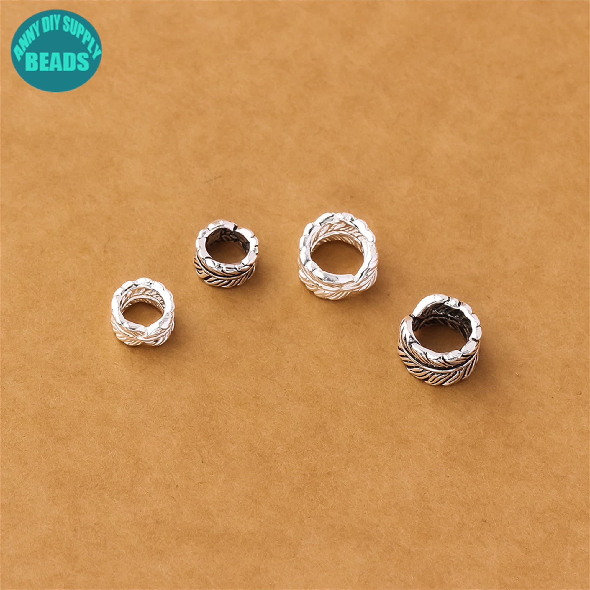 7/9mm S925 Solid Sterling Silver Feather Beads,Silver bead spacer,Silver Beads,feather charm,Large hole beads