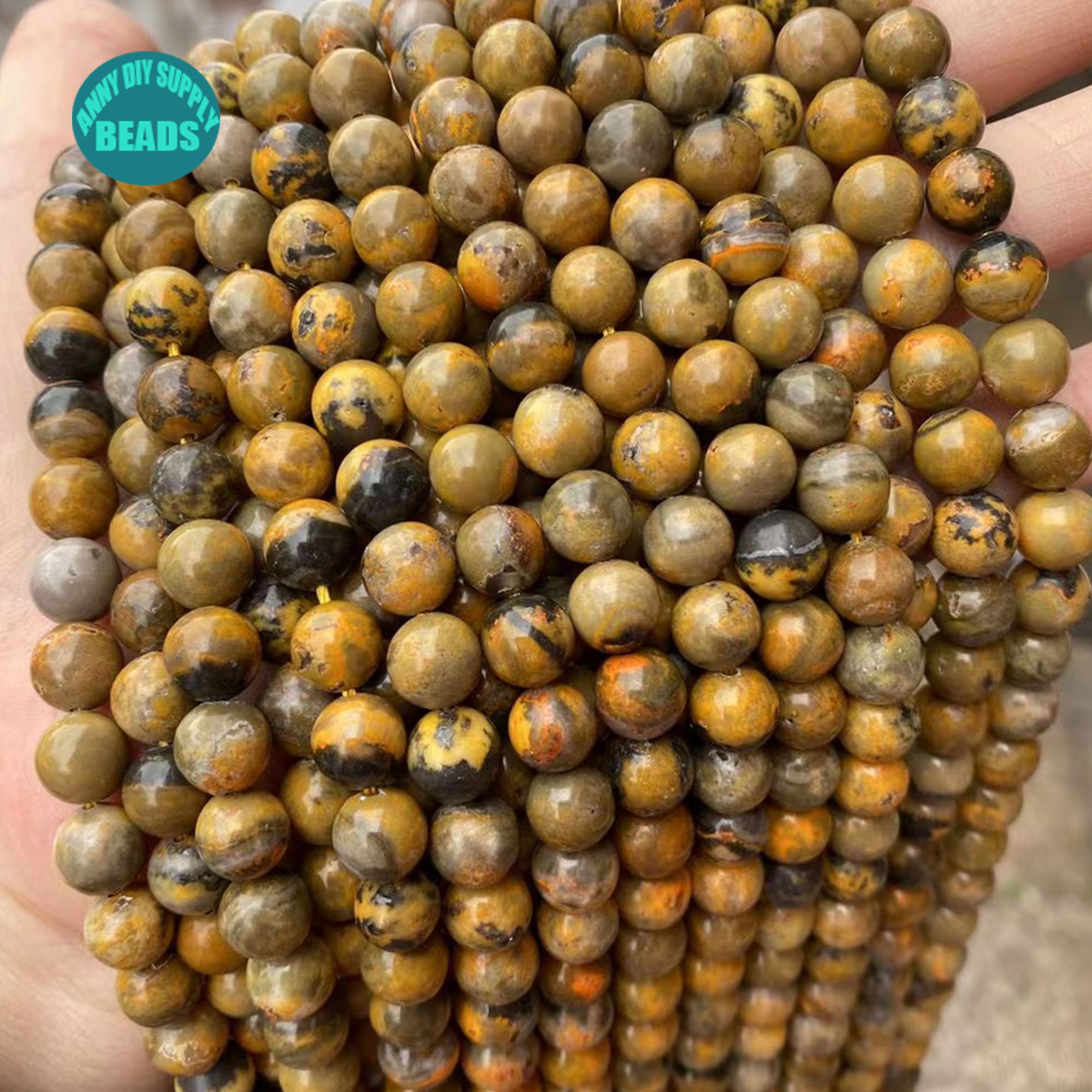 8/10mm Bumblebee Jasper Beads,Smooth Round Gemstone beads,15inch Full strand