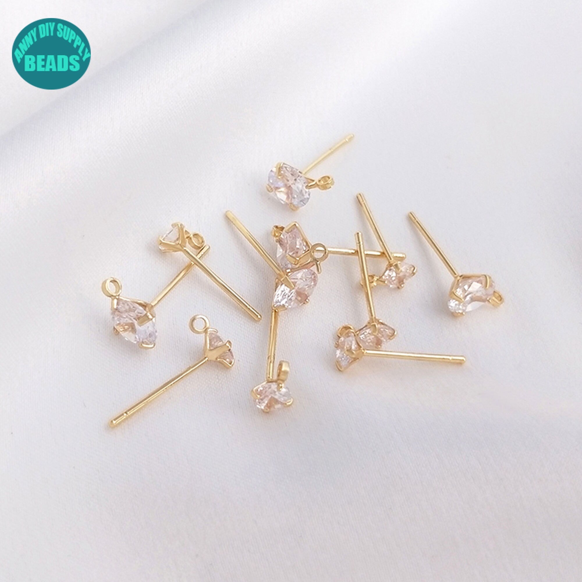 14K Gold Plated Brass Earring Stud With Sterling Silver Needle,CZ Earring stud with Loop