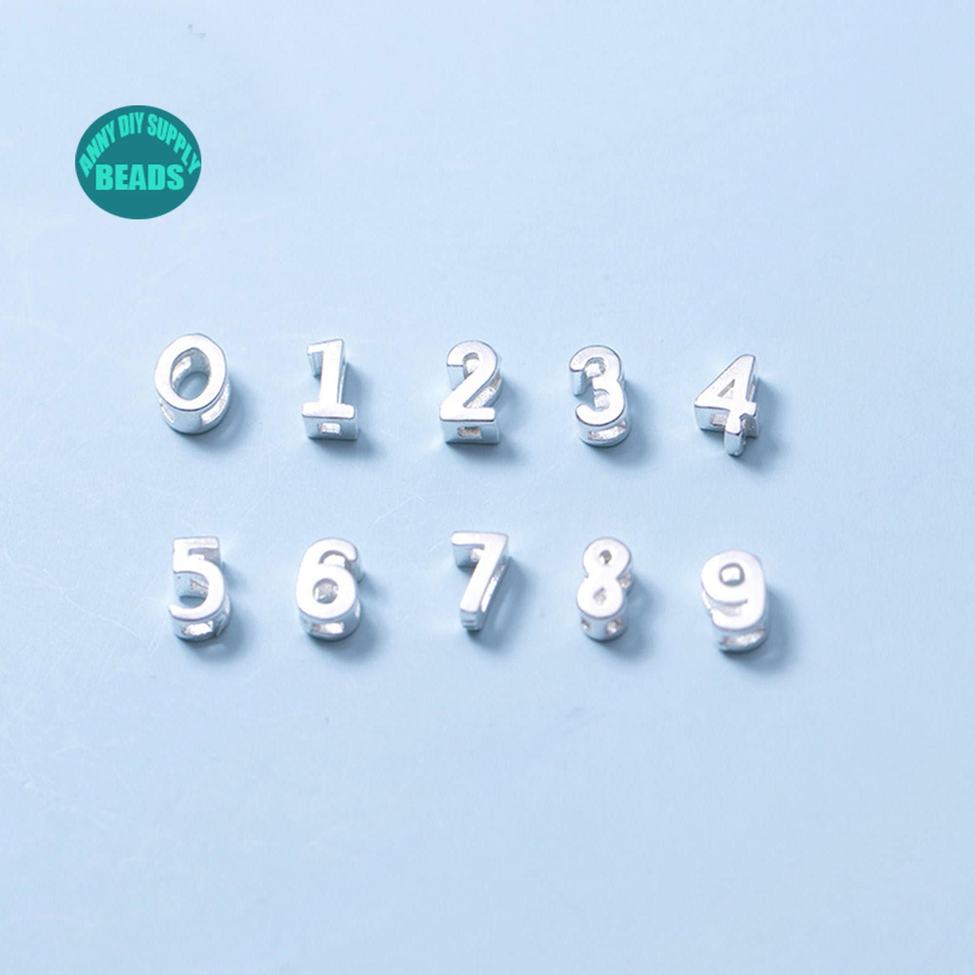 1/2/5/10PCS S925 Sterling Silver Number Beads,Silver Number Beads,Silver necklace Beads