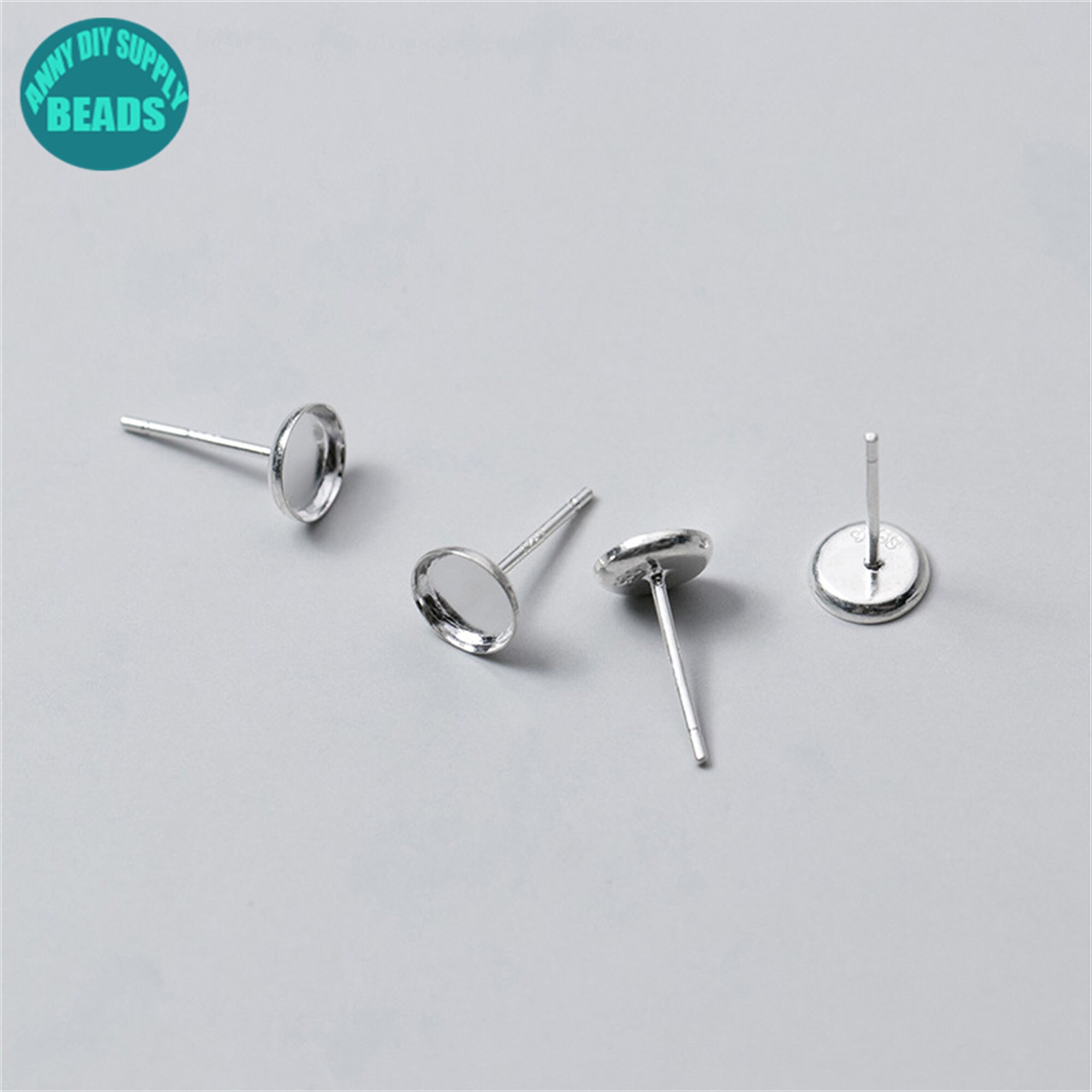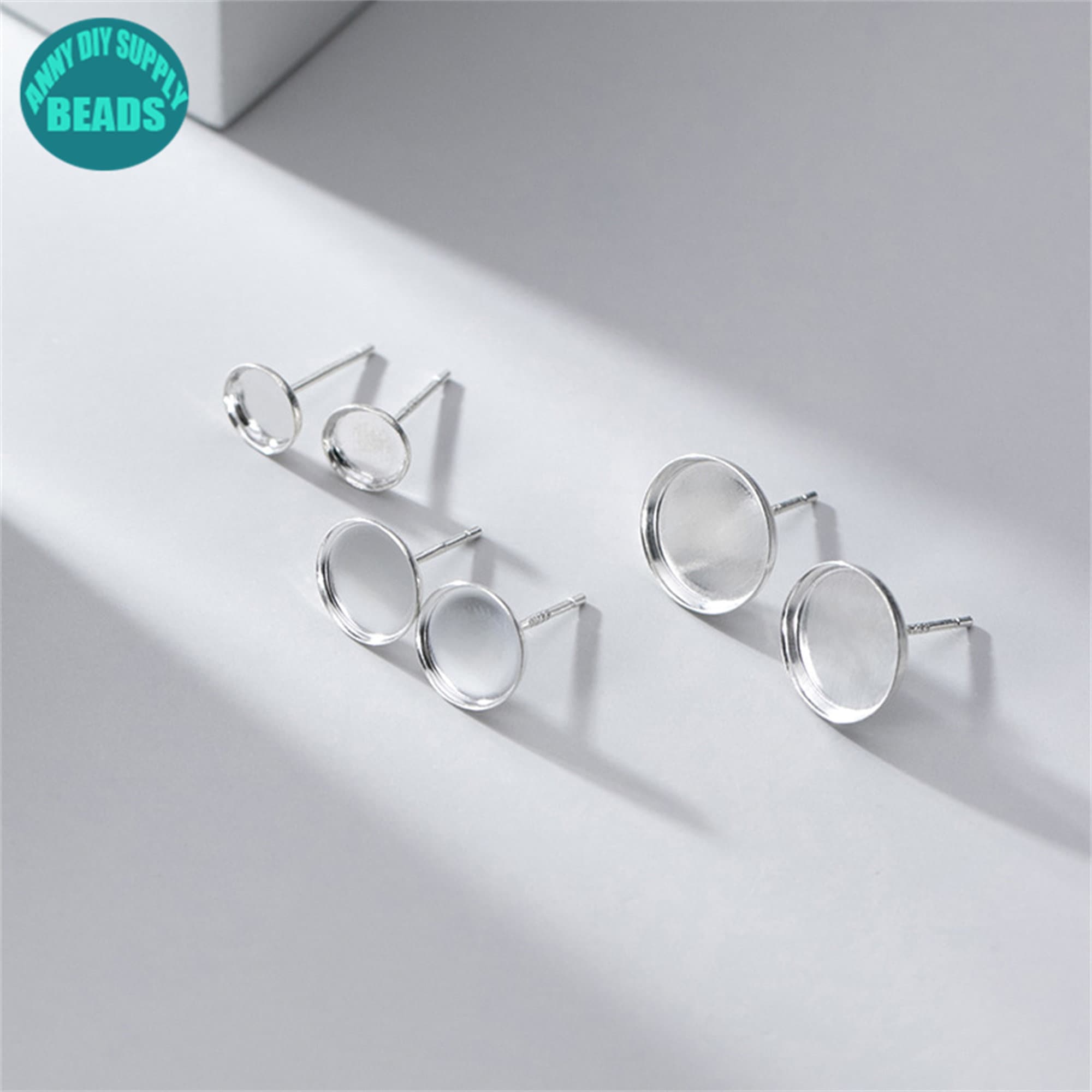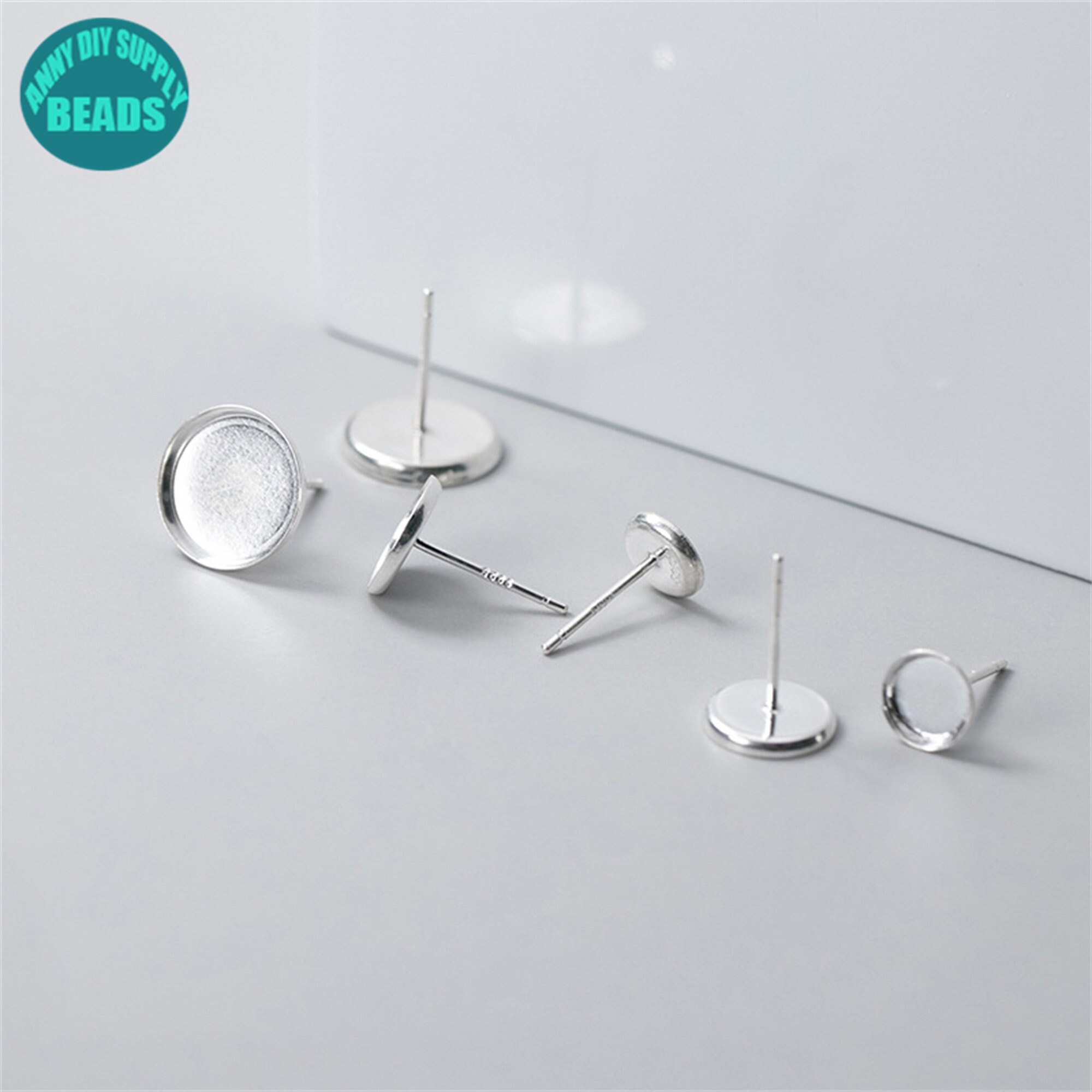 S925 Sterling silver Ear Earring Posts,Round Cabochon Earring Support,Round Post Blank Earrings,Tray cabochon Earring Setting