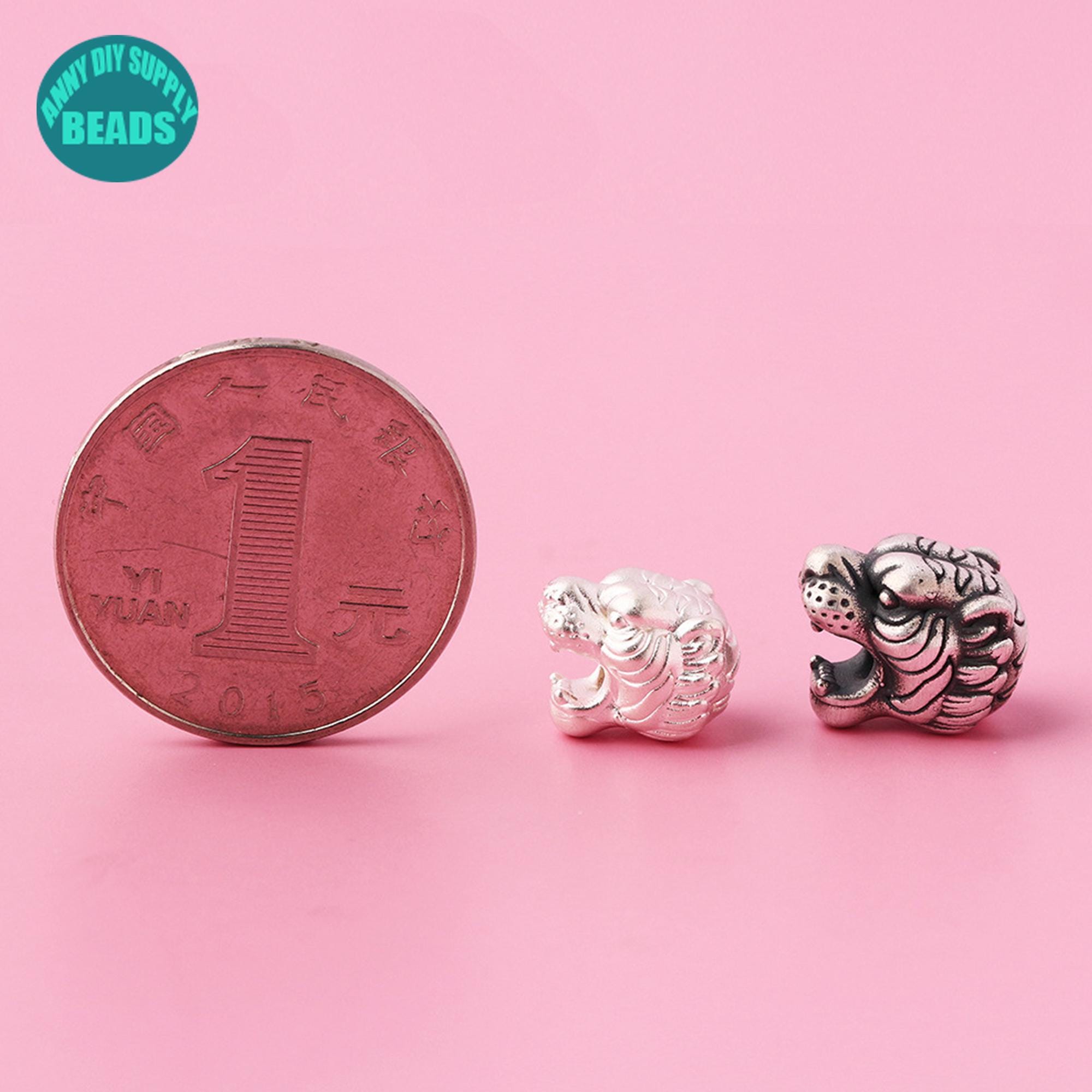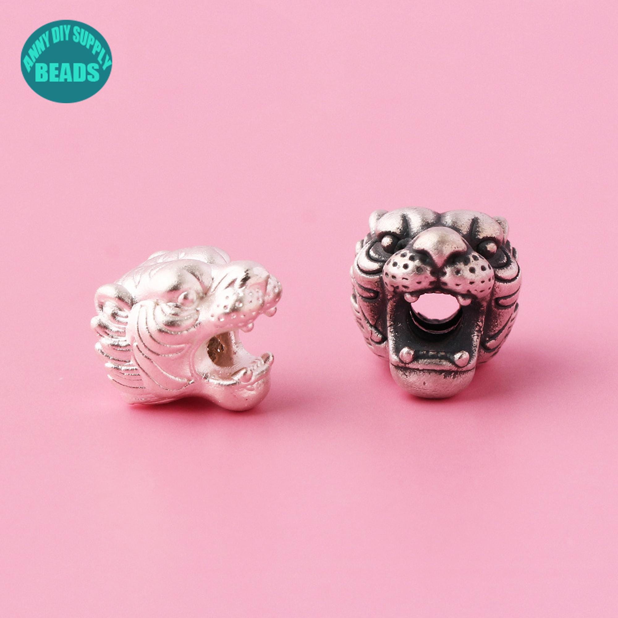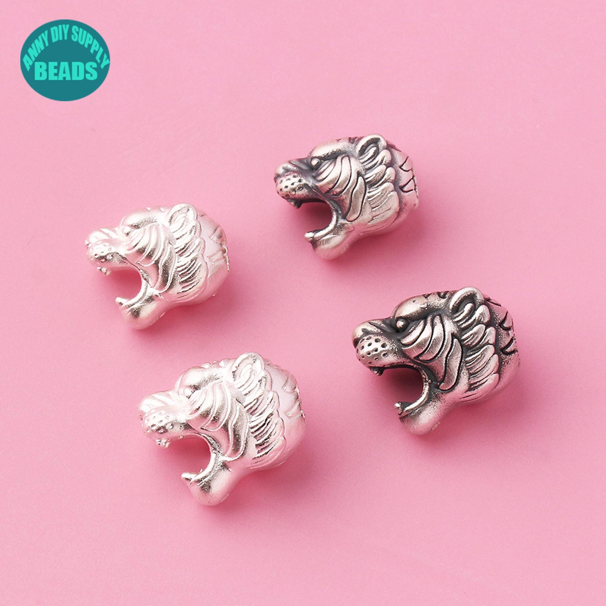 S999 3D Hard Fine Silver Light Weight leopard Head Beads,Man’s Bracelet Focal Beads
