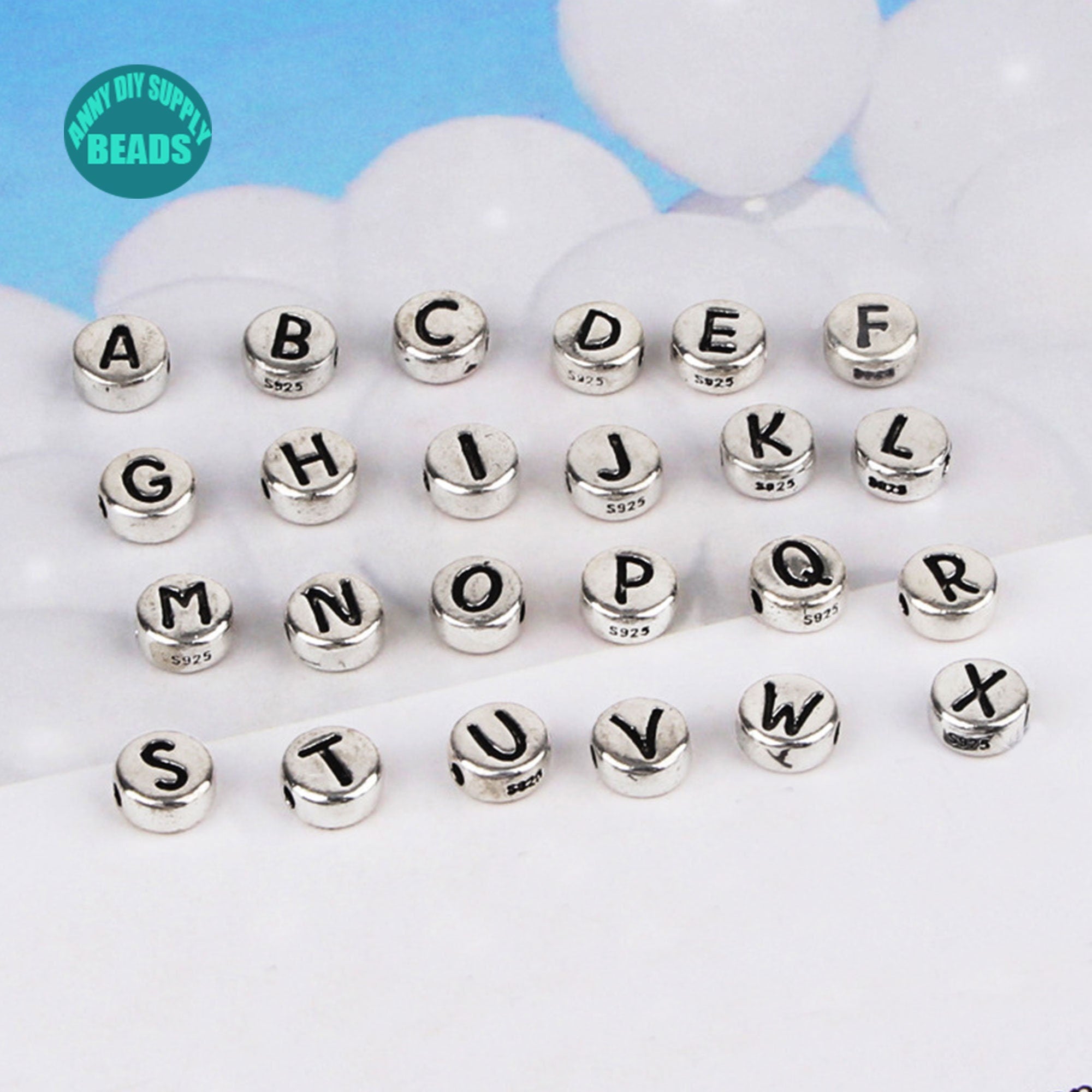 6.7mm S925 Sterling Silver 26 Alphabet Letter Beads,Alphabet letter beads,Sterling Silver cake beads,Initial bead